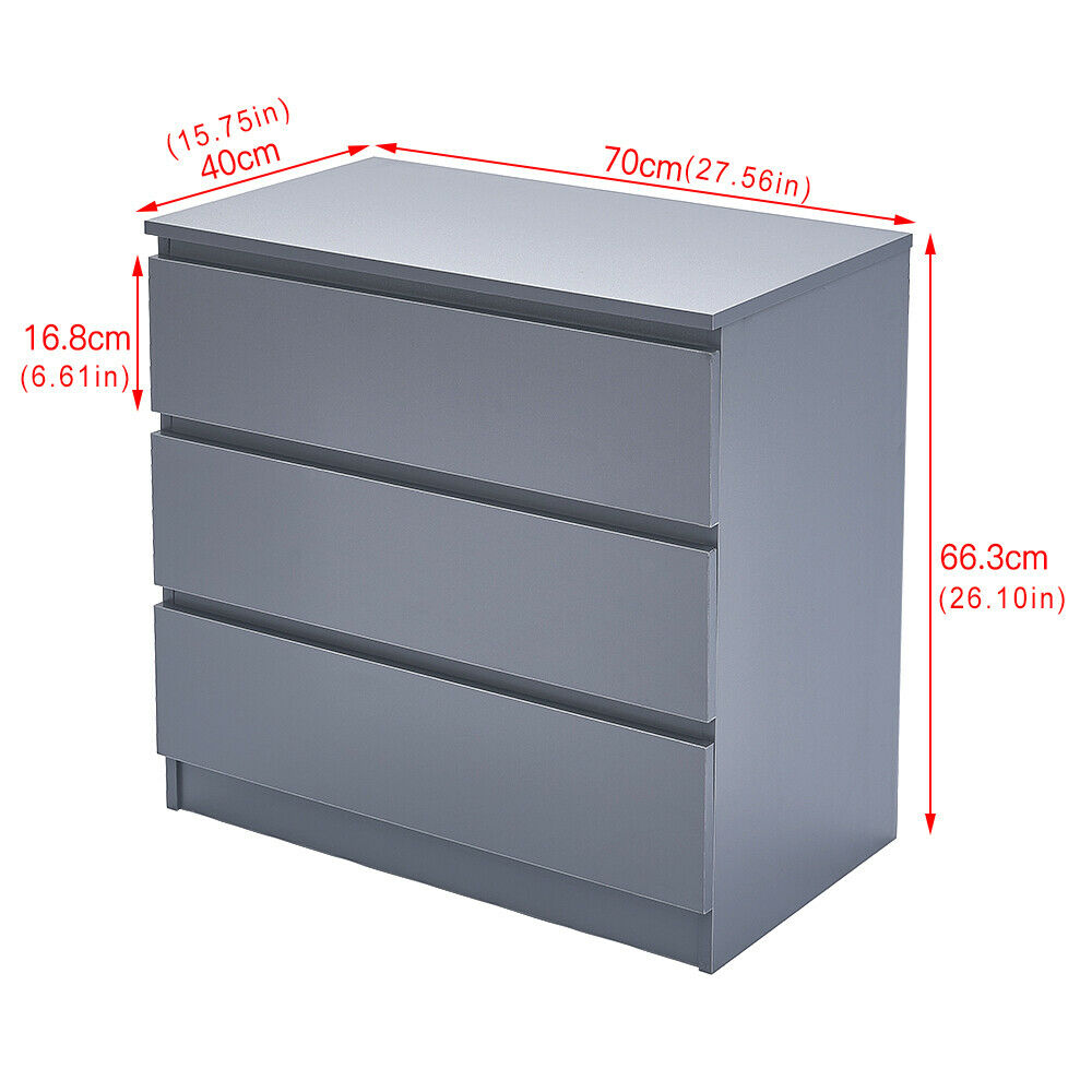 Modern Chest of Drawers Bedside Table Cabinet Nightstand 3 Drawers Bedroom