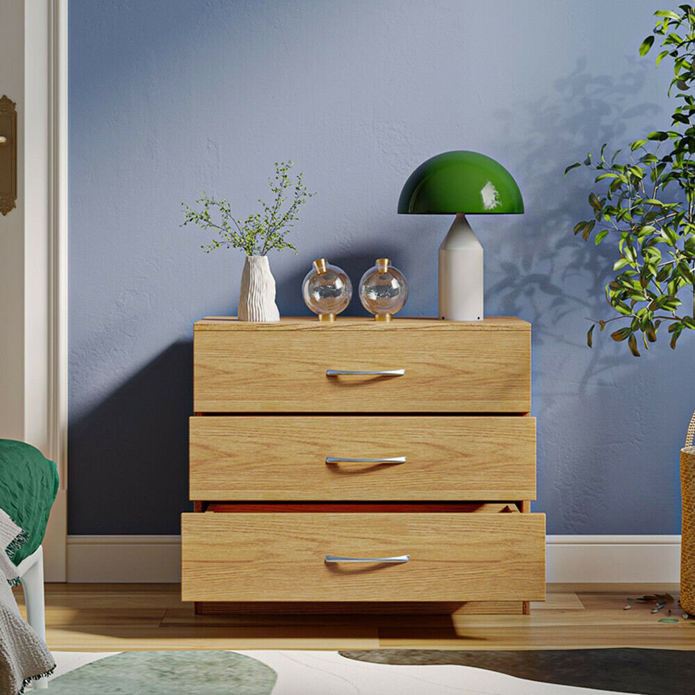 Modern Chest of Drawers Bedside Table Cabinet Nightstand 3 Drawers Bedroom Oak