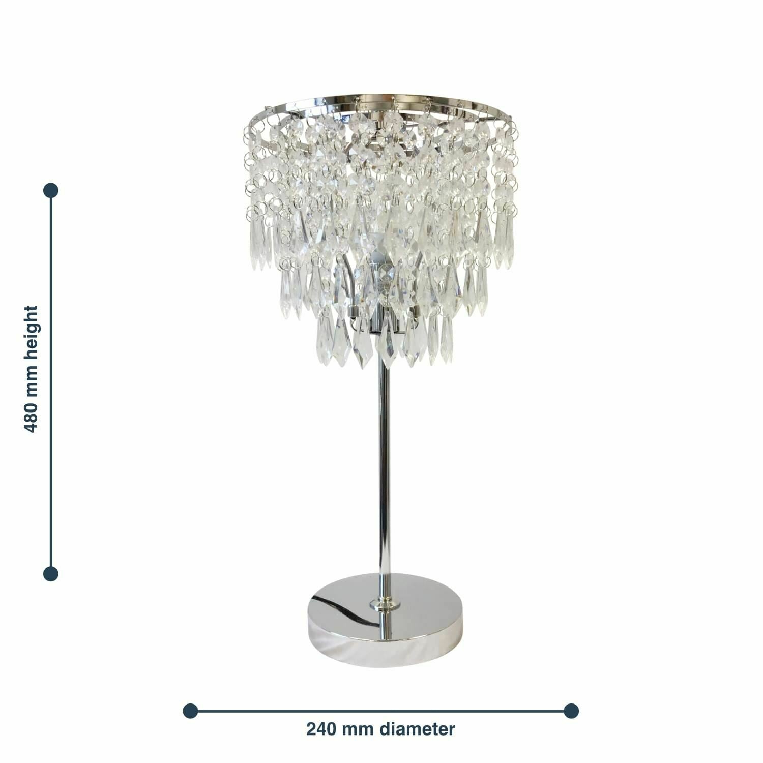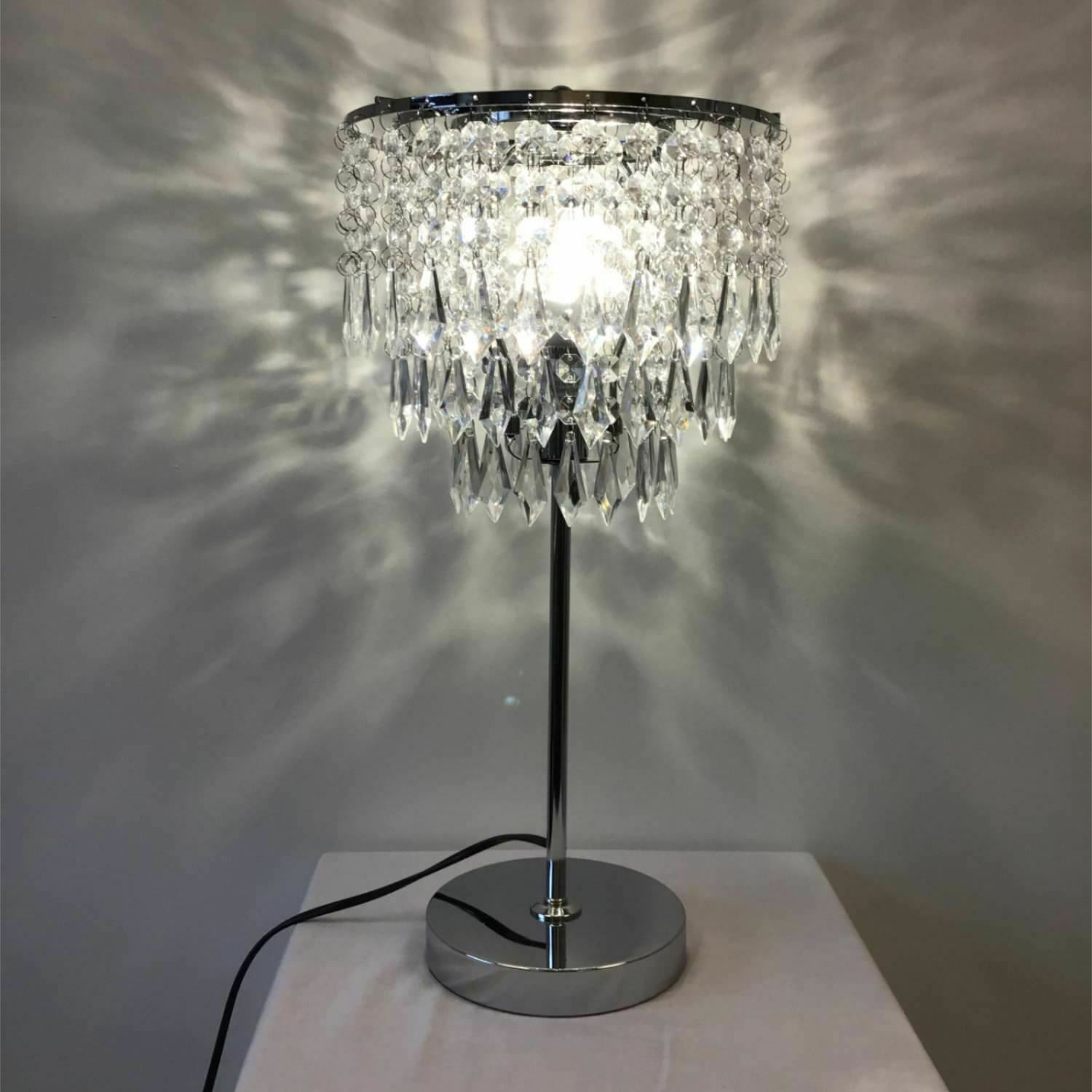 Modern Chrome Acrylic Crystal Jewelled Table Lamp or Bedside Light