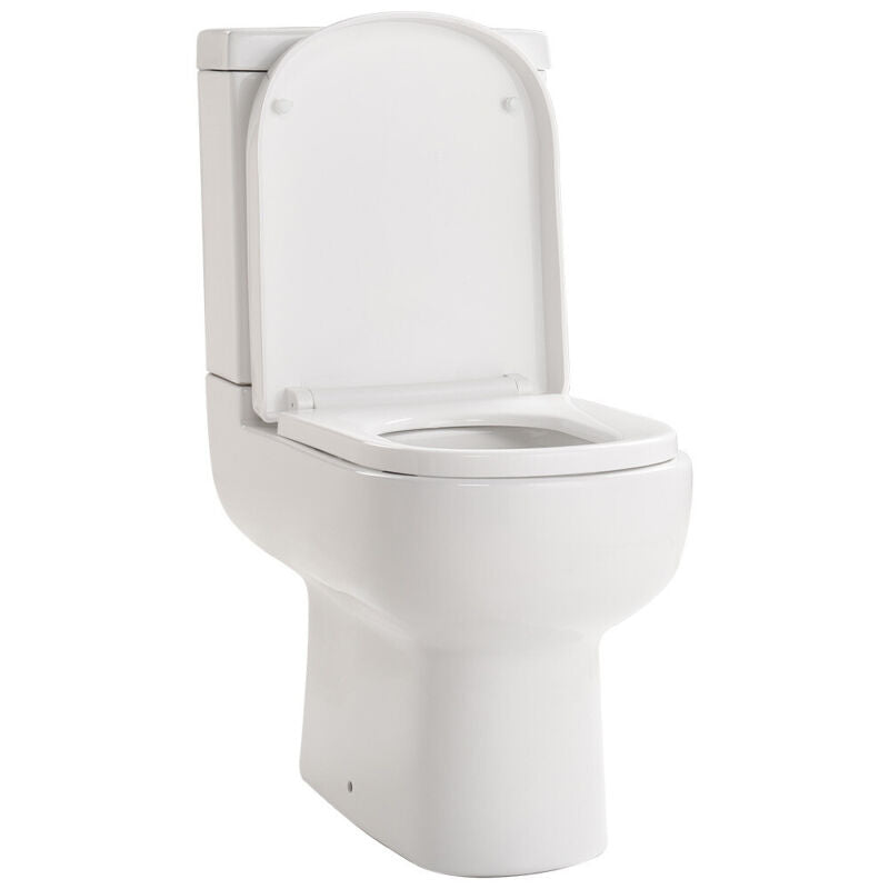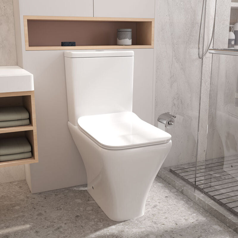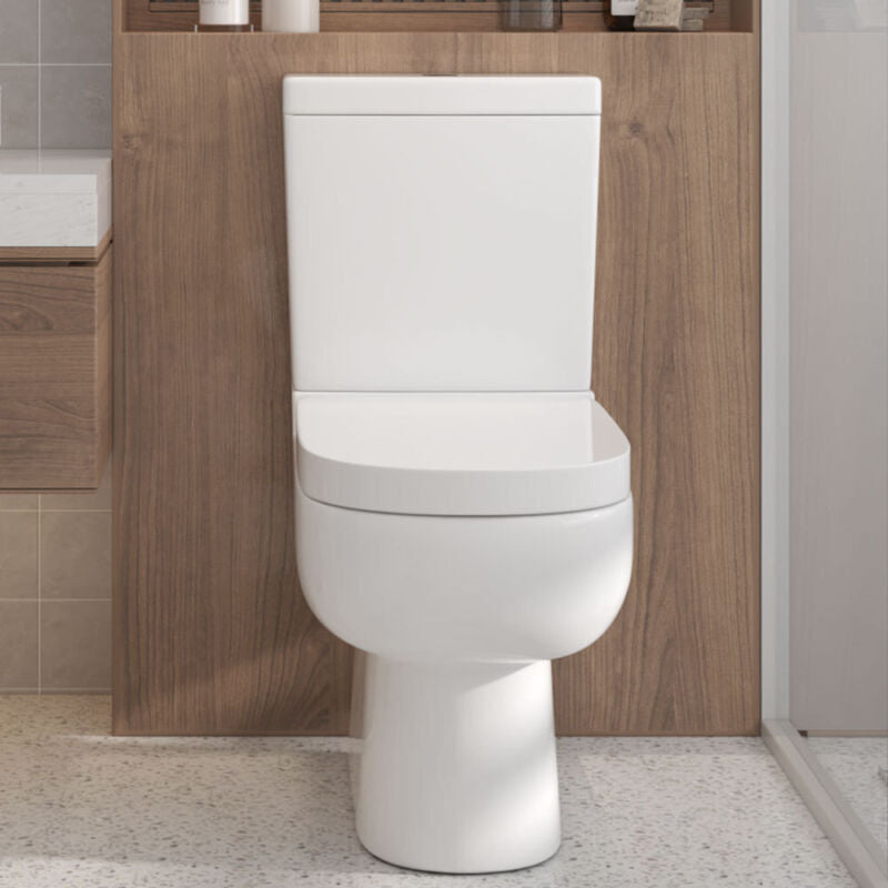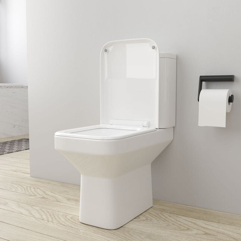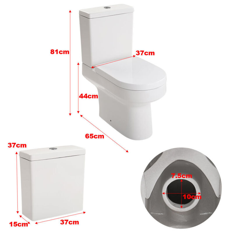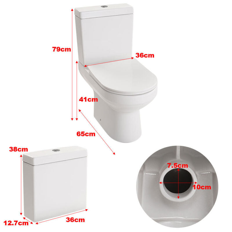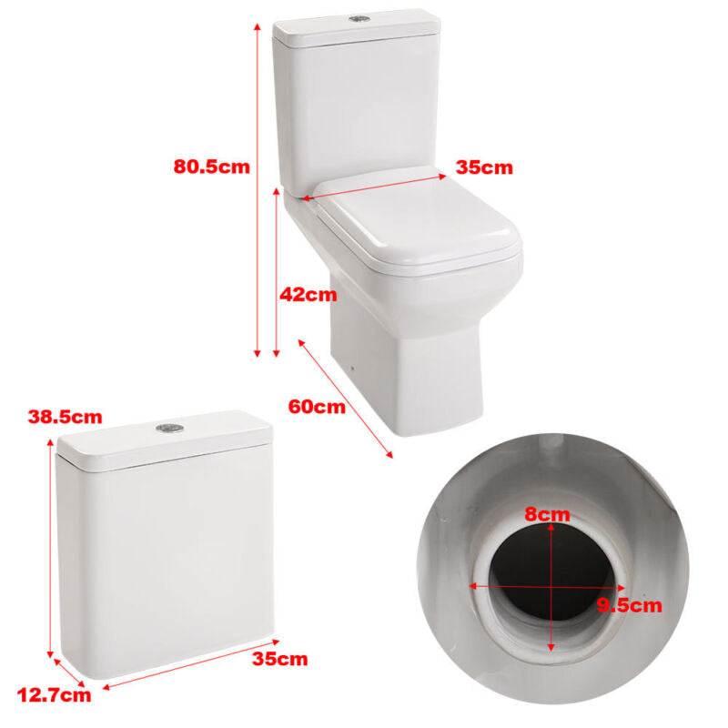 Modern Close Coupled Toilet Bathroom White Ceramic Soft Close Seat WC Pan Home