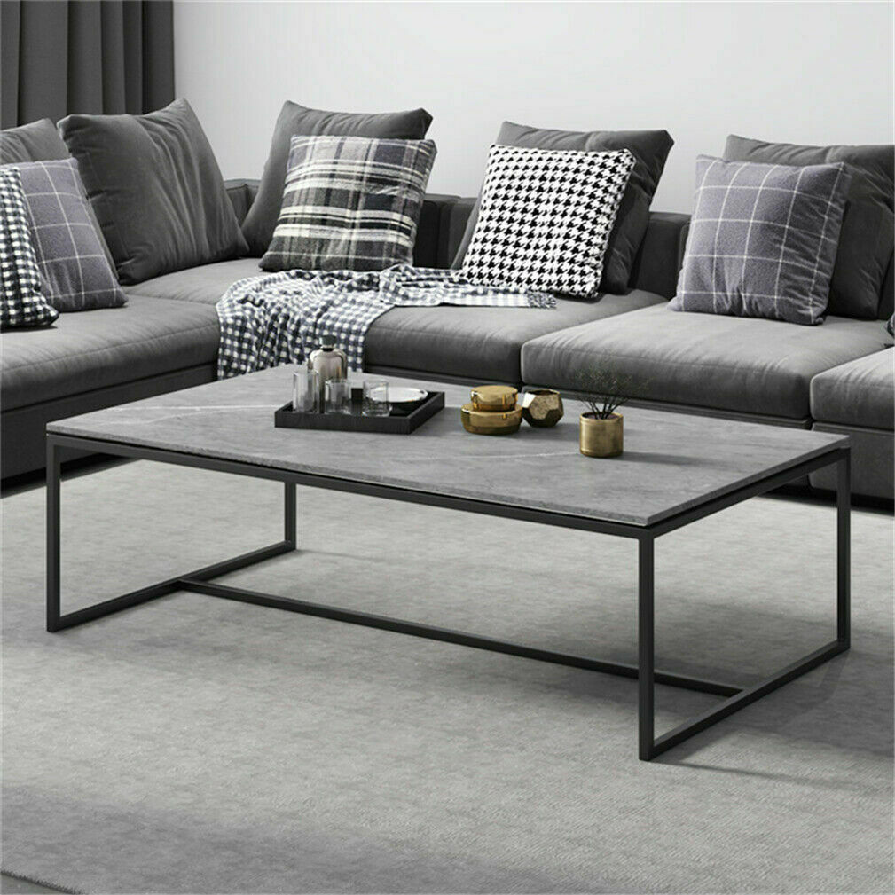 Modern Coffee Rea Table Rectangle Marble Top Table Storage Living Room Furniture