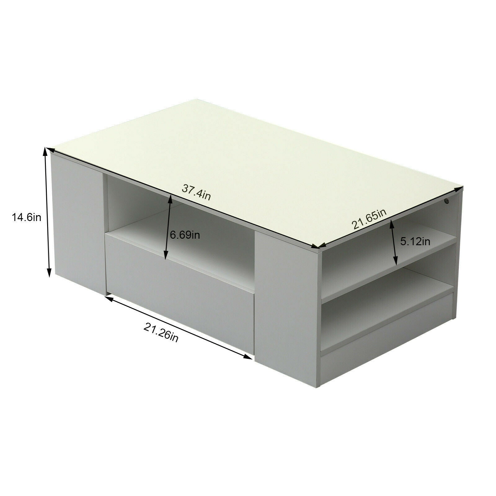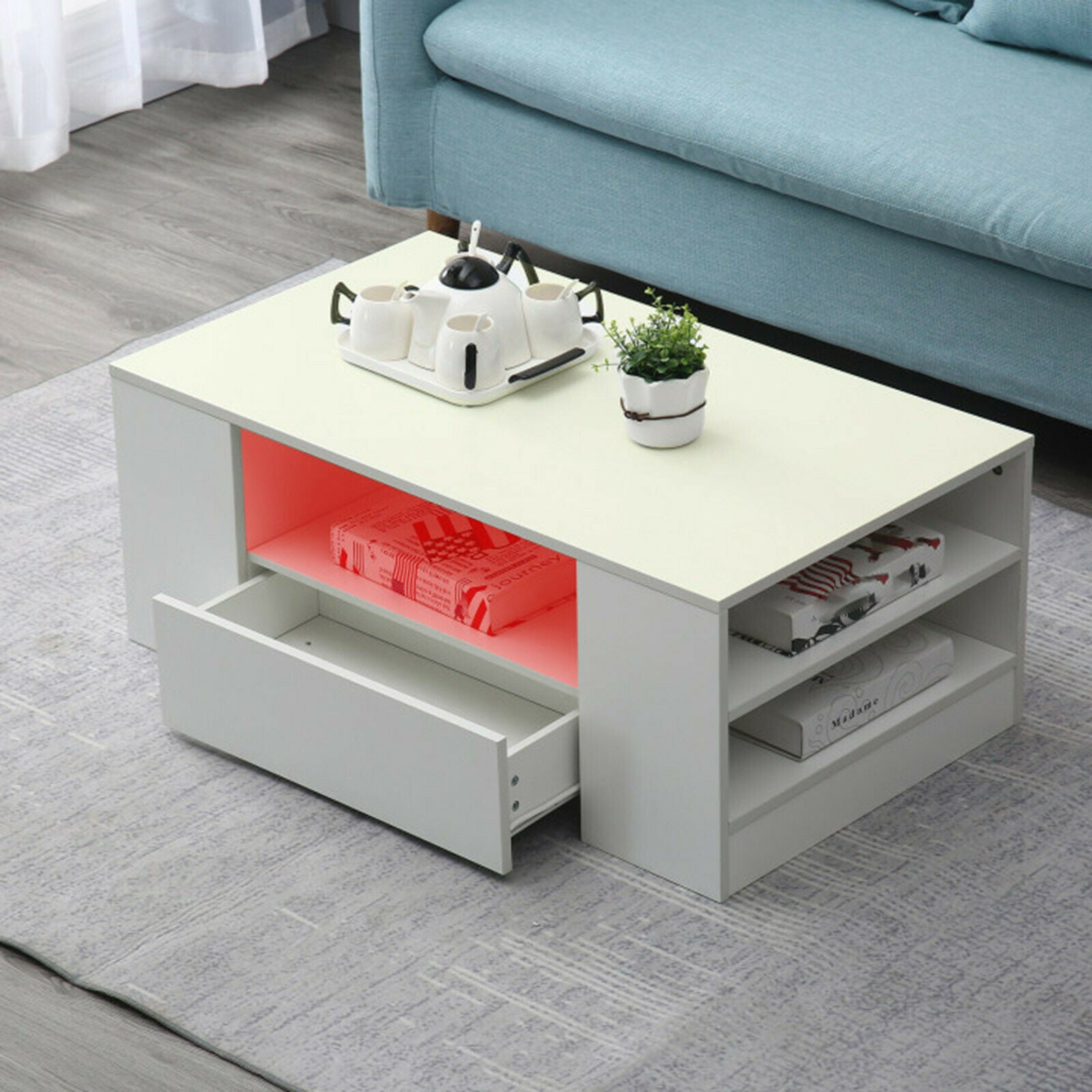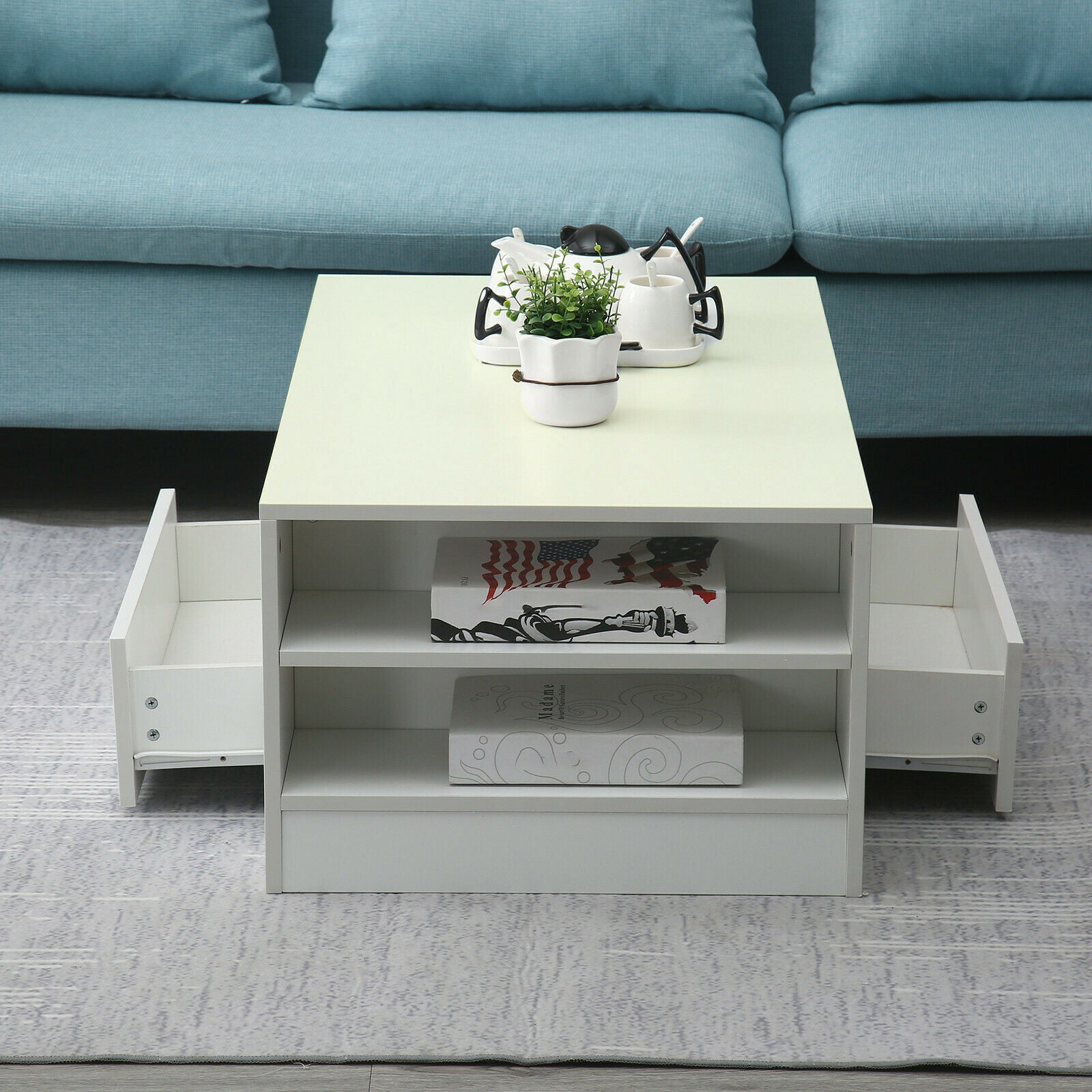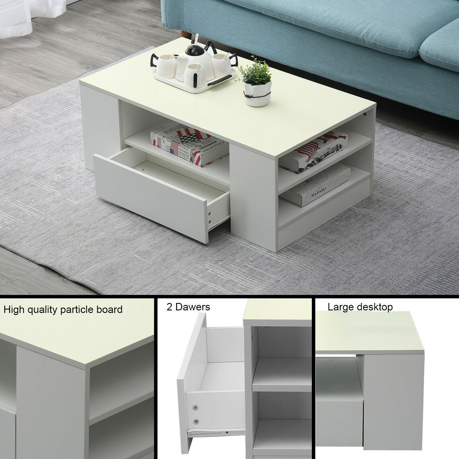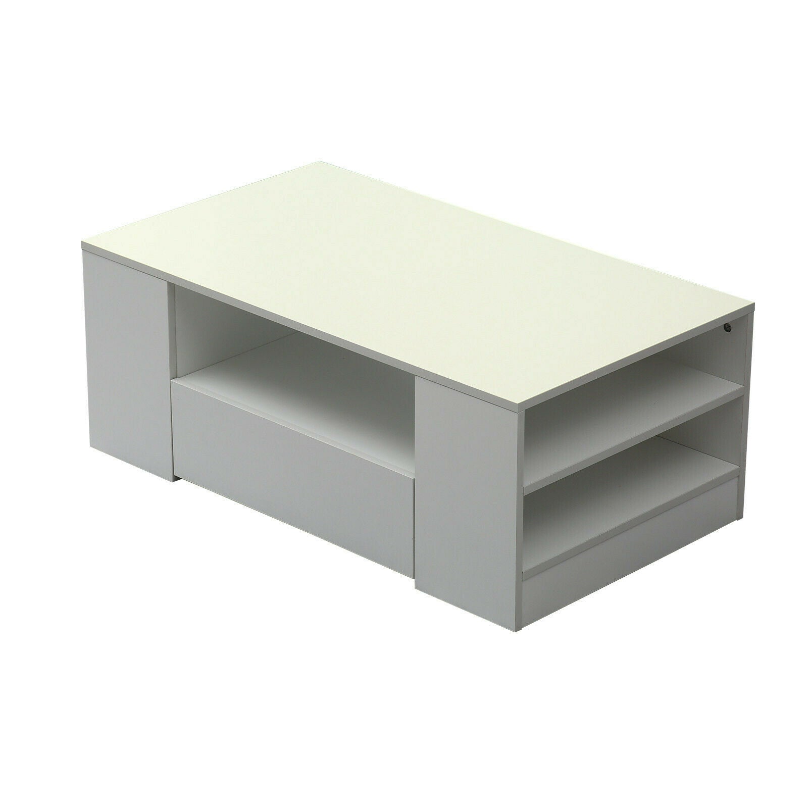 Modern Coffee Table 2-Drawer Side Table High Gloss Living Room Furniture White