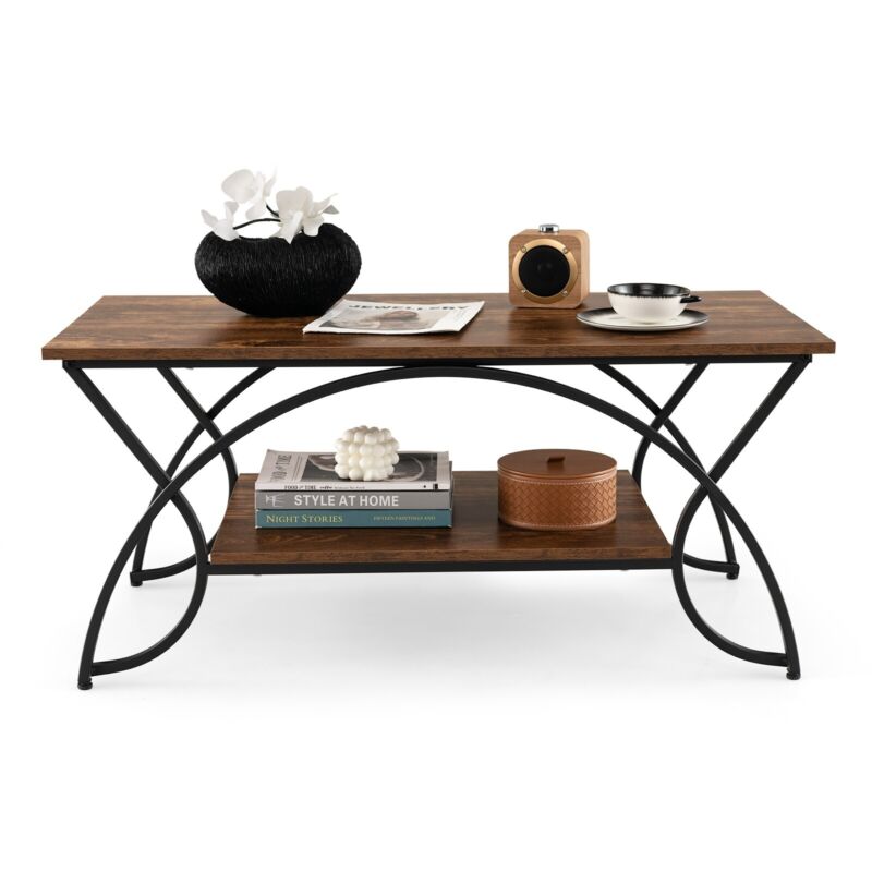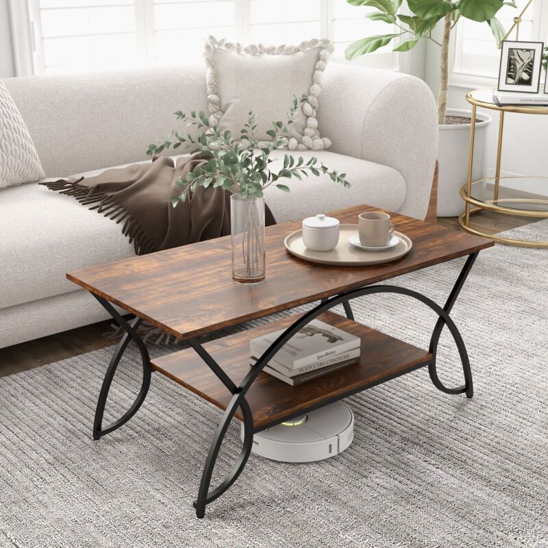 Modern Coffee Table 2-Tier Faux Marble Accent Table Snack End Table Living Room