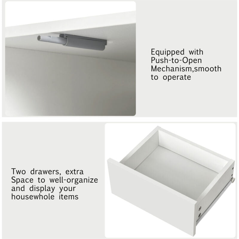Modern Coffee Table with 2 Drawers LED High Gloss Living Room Table Furniture QR