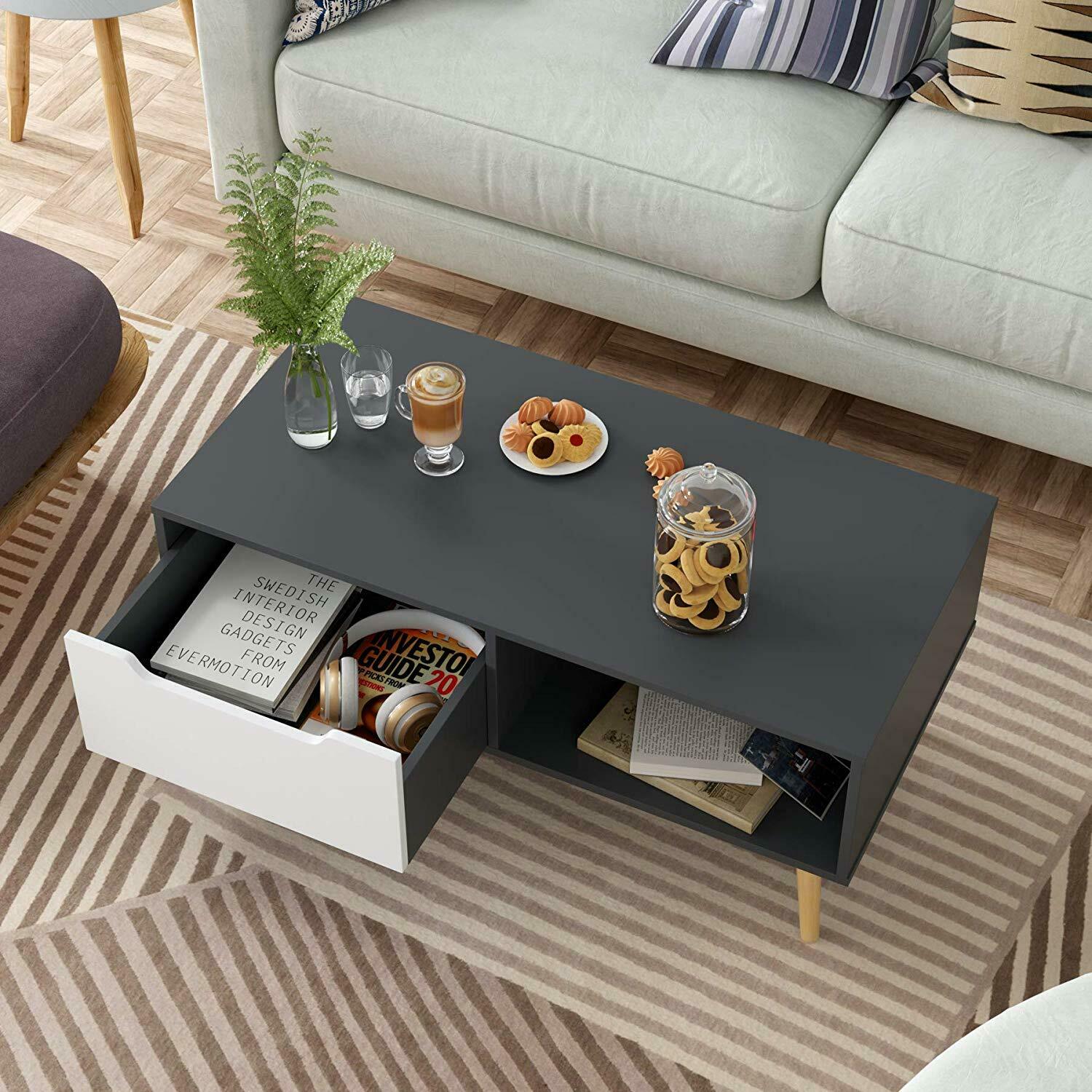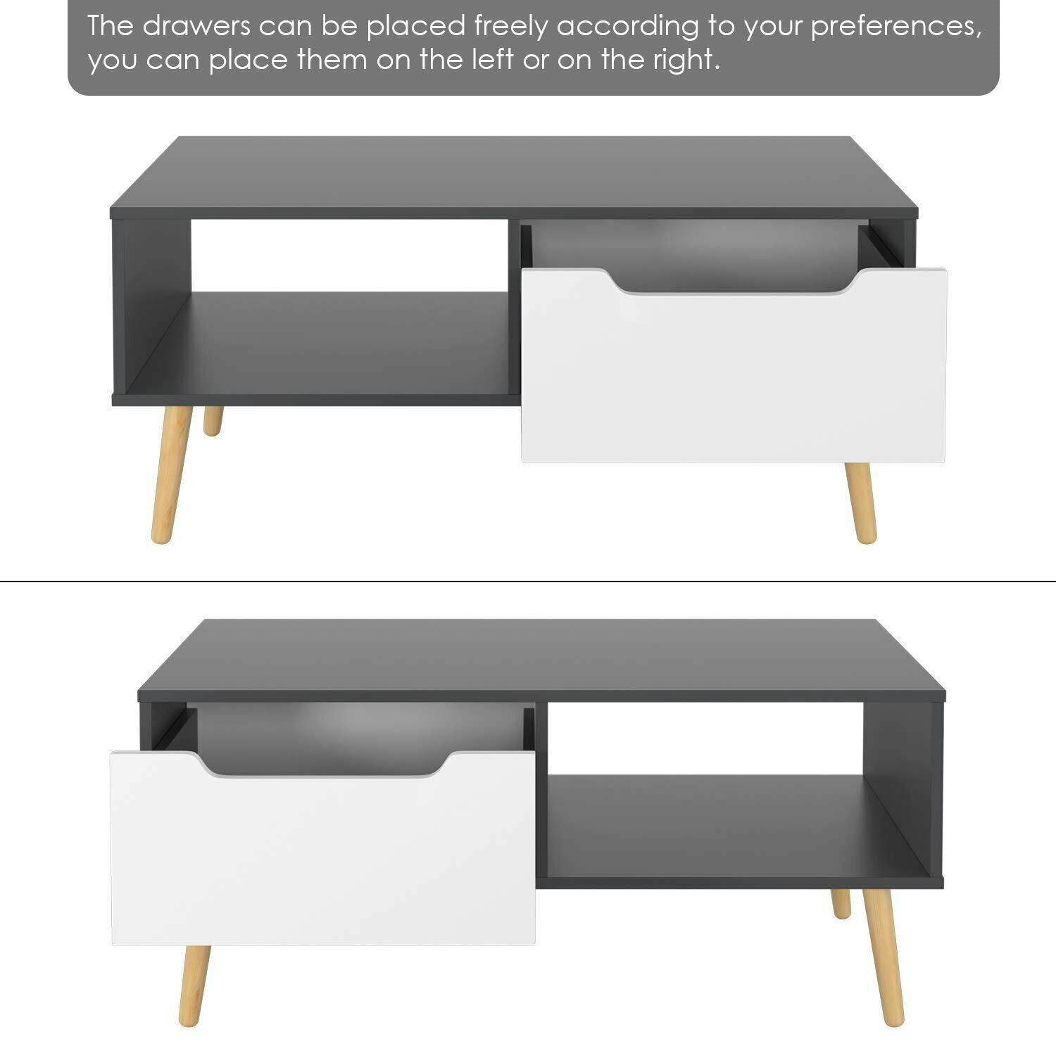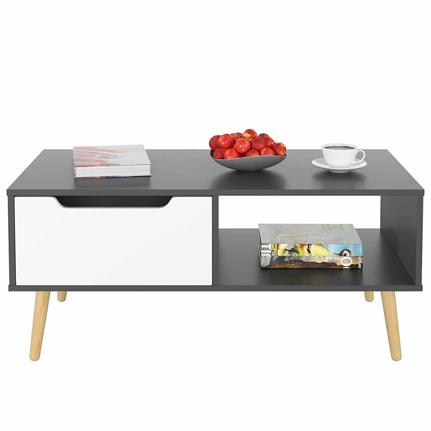 Modern Coffee Table with Drawer and Open Storage TV Stand Living Room Unit