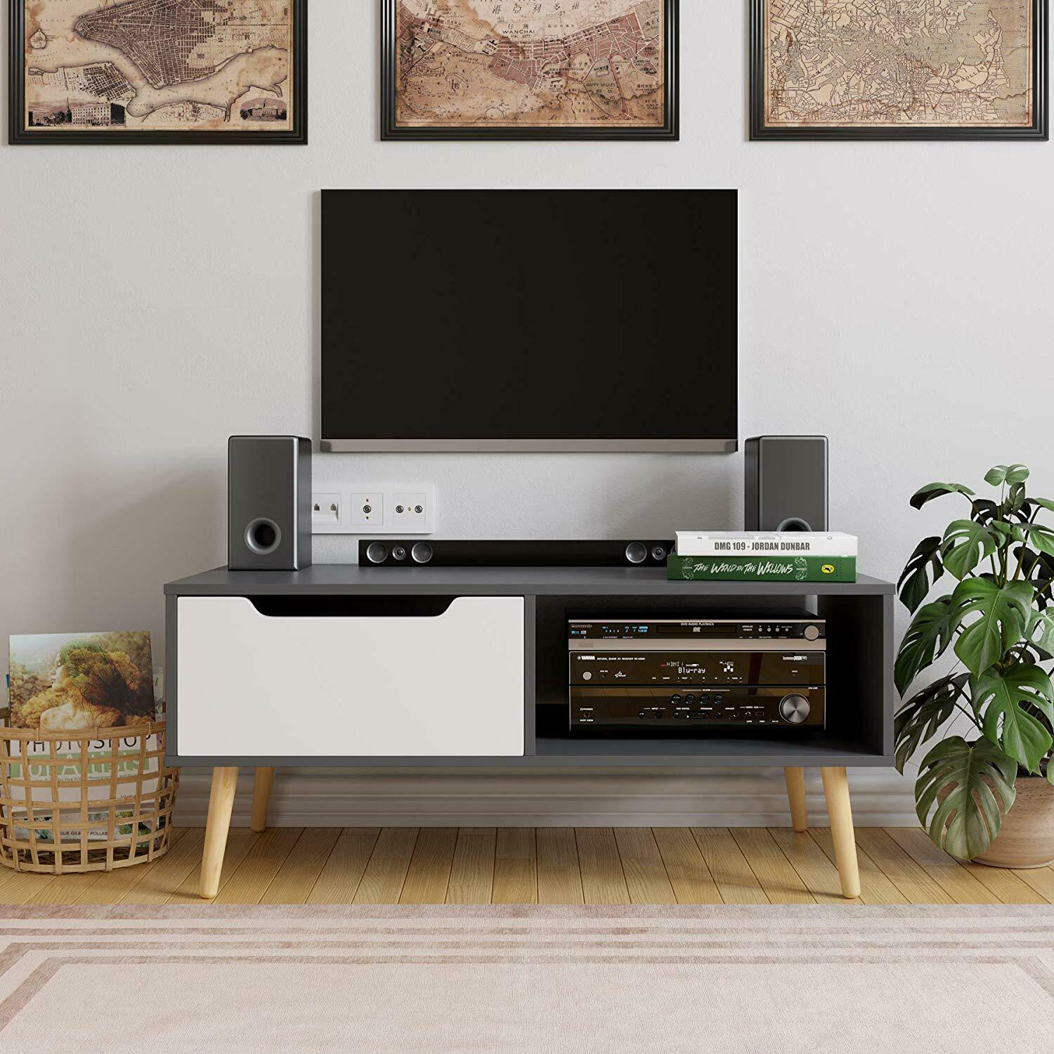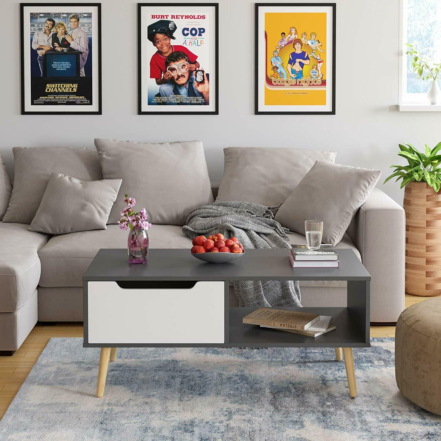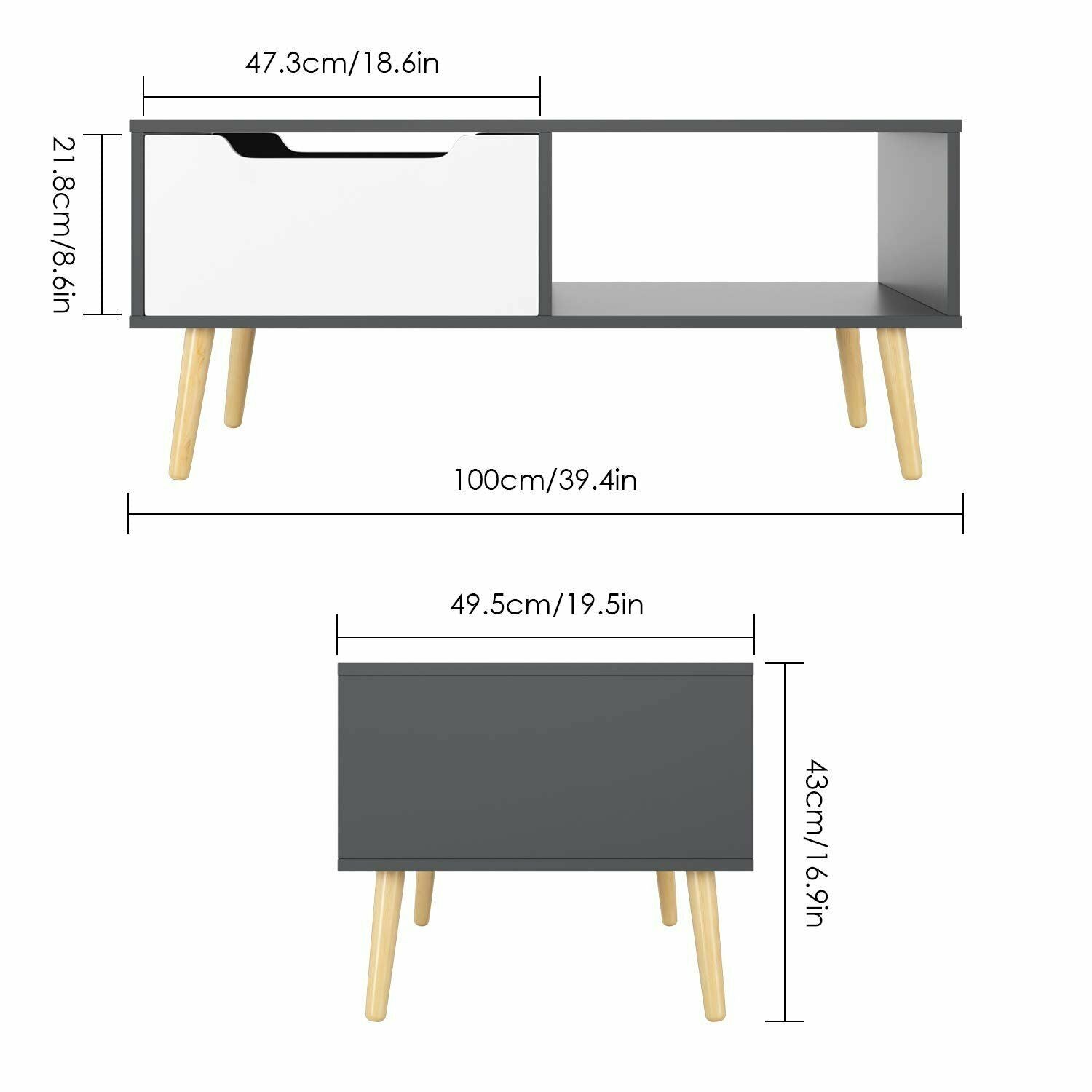 Modern Coffee Table with Drawer and Open Storage TV Stand Living Room Unit