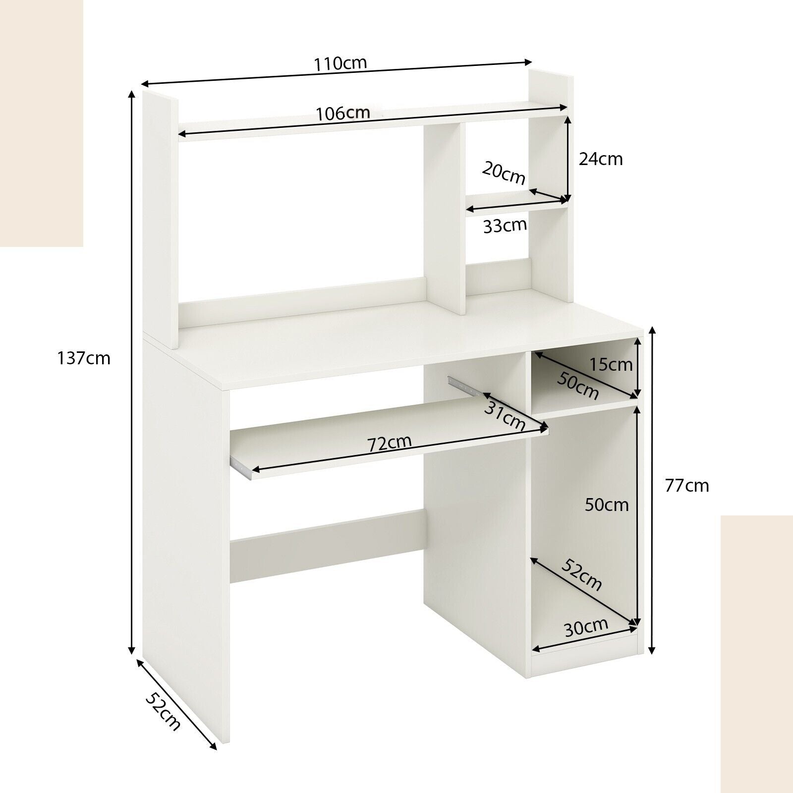 Modern Computer Desk Study Writing Desk Workstation with Hutch and Bookshelf