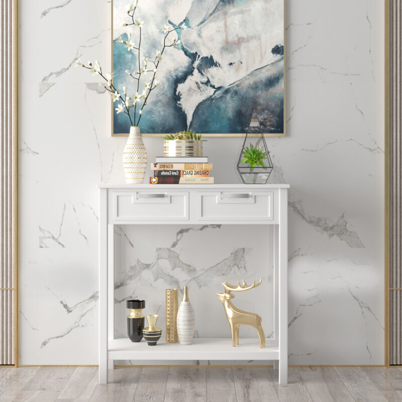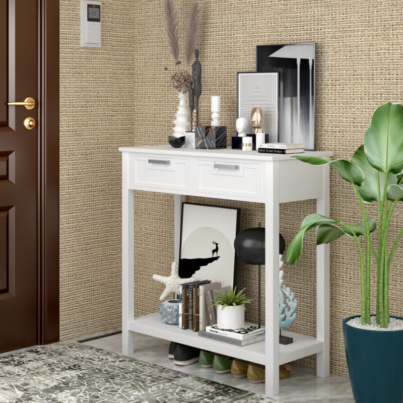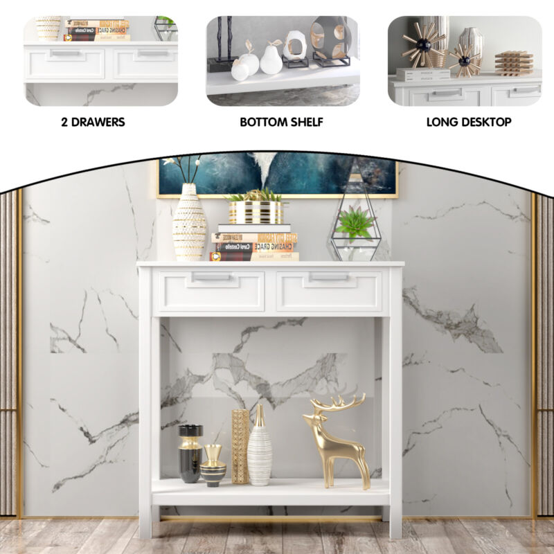 Modern Console Table 2 Drawer w/Shelf Dressing Table Hallway Hall Desk Furniture