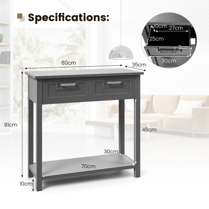 Modern Console Table 2 Drawer w/Shelf Dressing Table Hallway Hall Desk Furniture