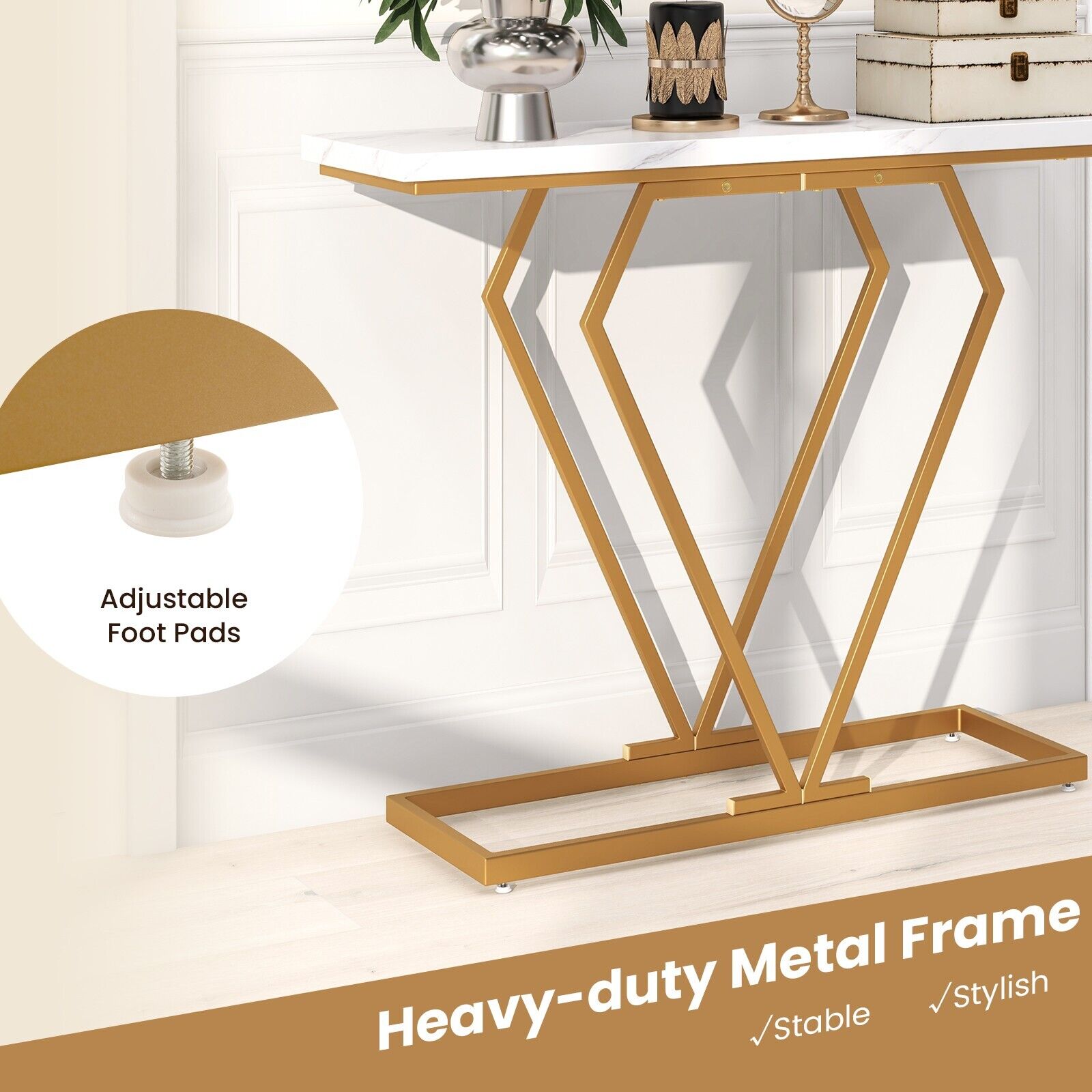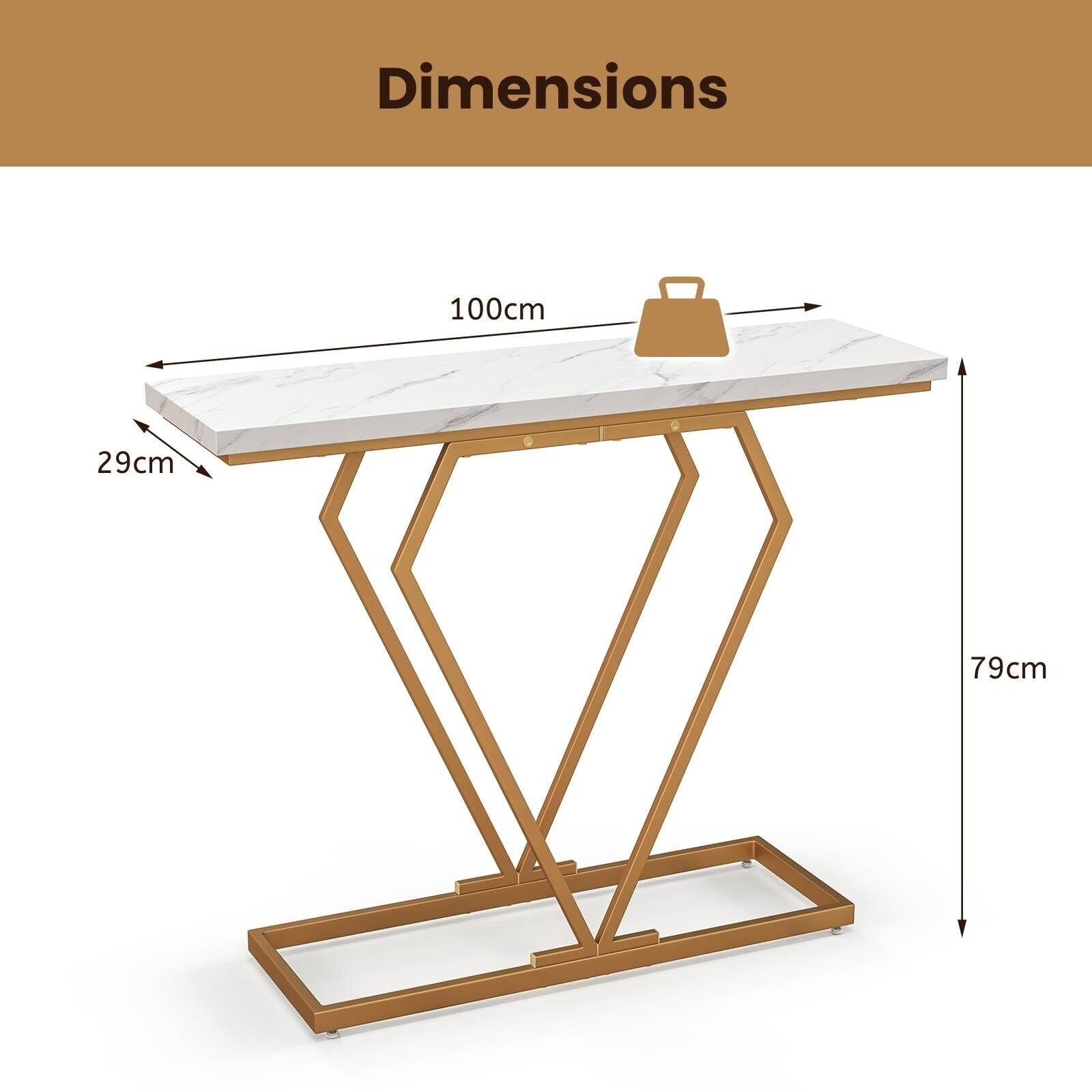 Modern Console Table Faux Marble Narrow Entryway Hallway Table Accent Desk 100cm