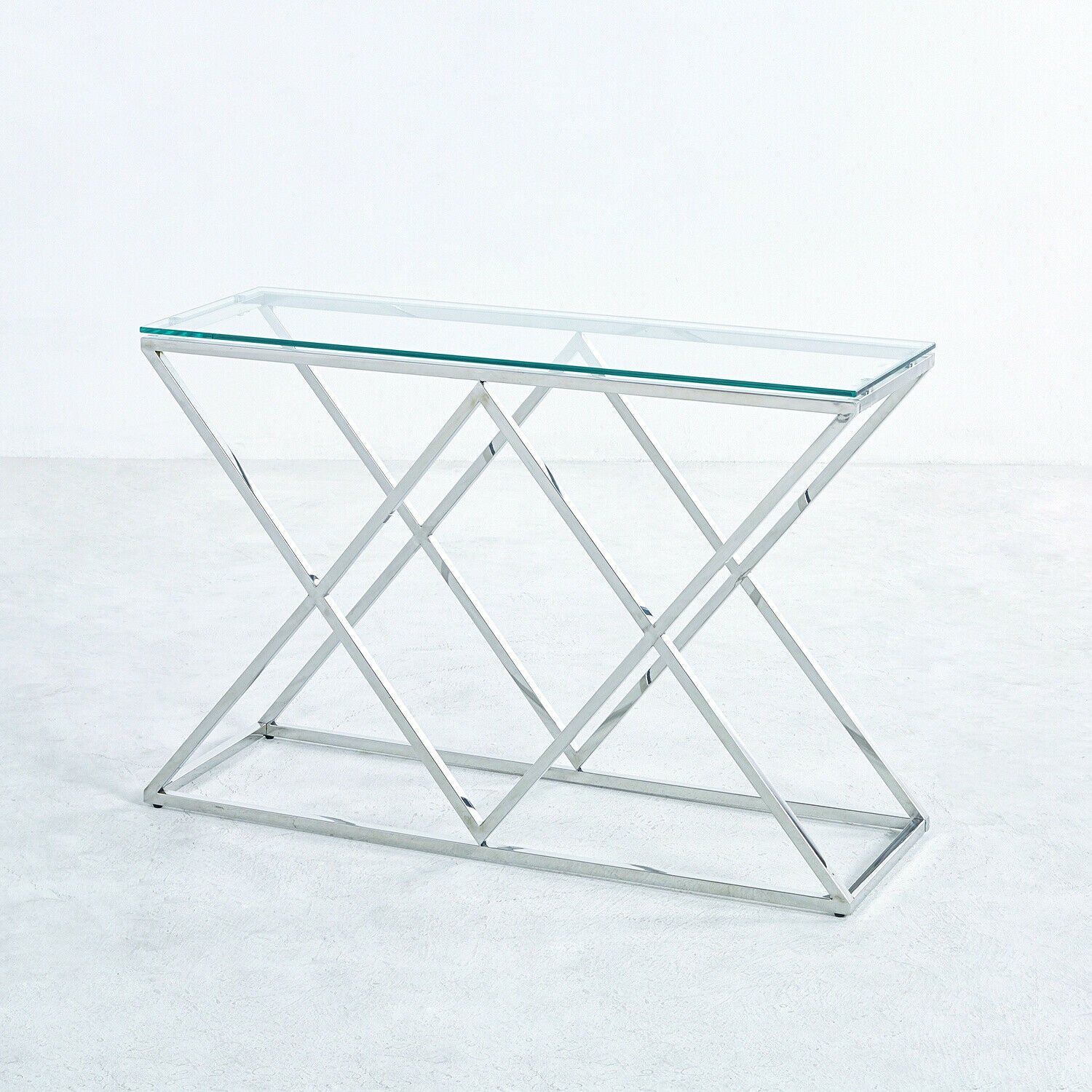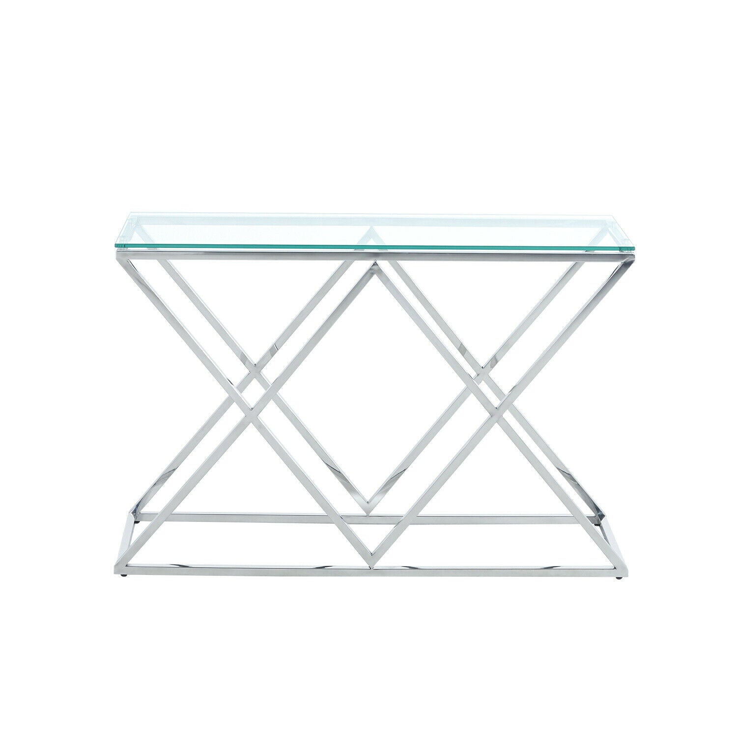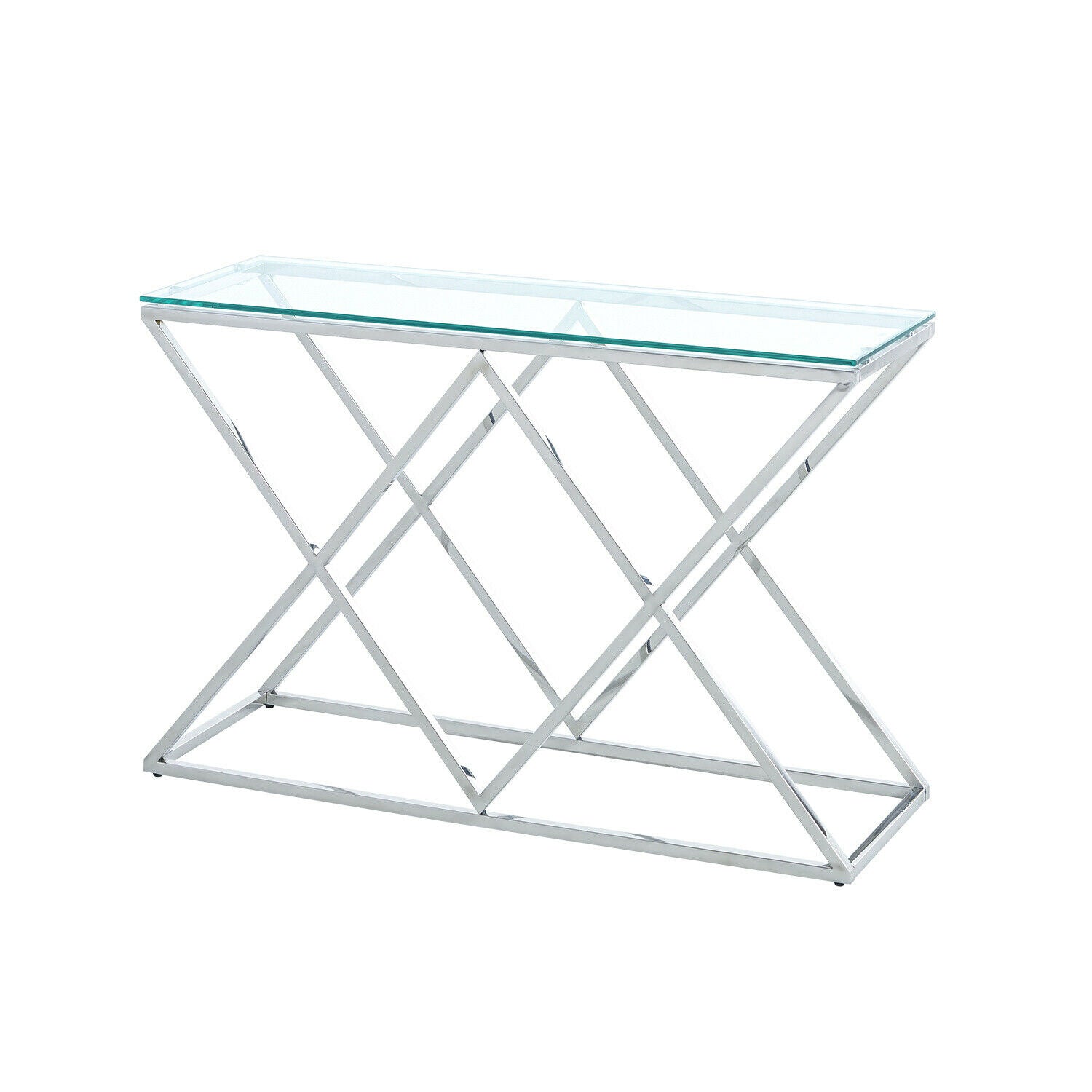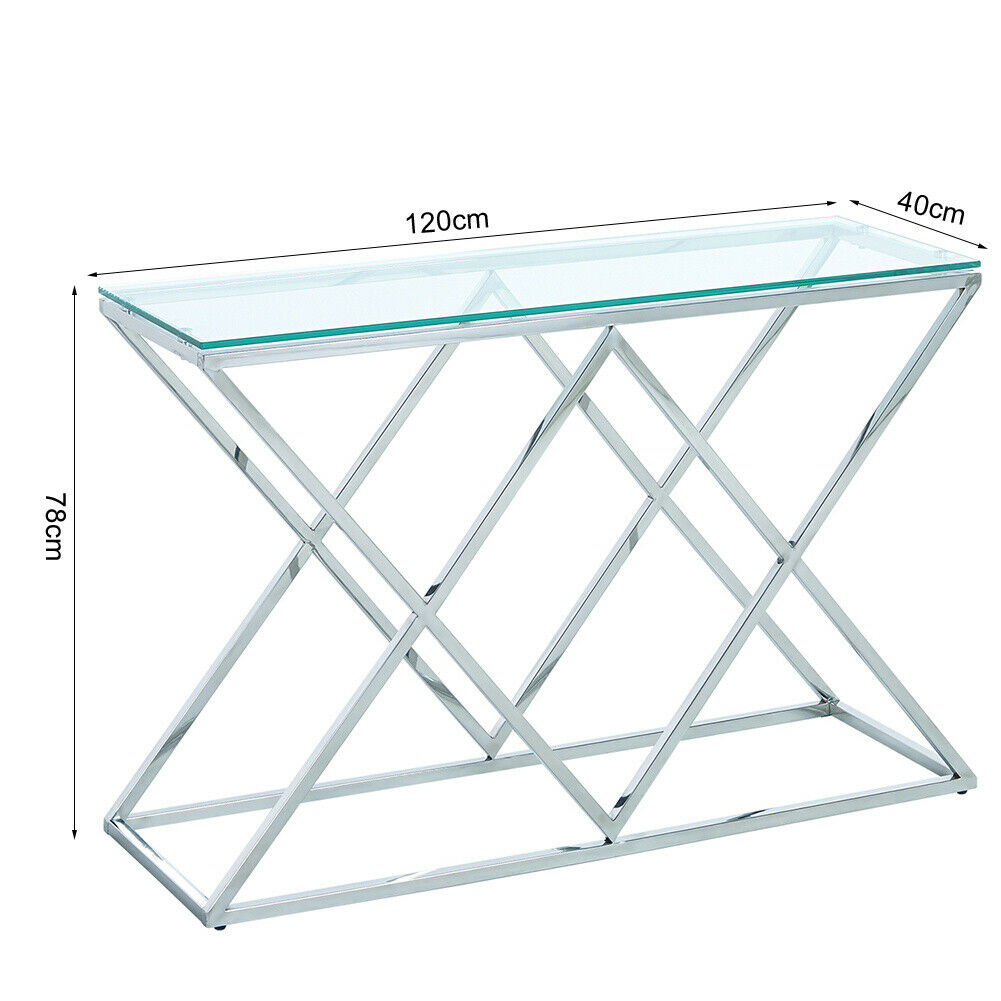 Modern Console Table Side Table with Clear Tempered Glass and Chrome Cross Legs