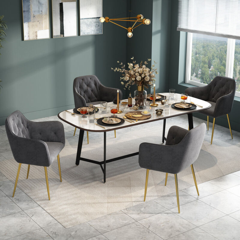 Modern Dining Chair Velvet Padded Seat Metal Legs Kitchen Restaurant Home Office