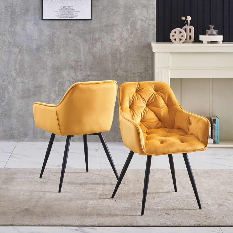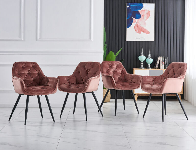 Modern Dining Chairs Velvet Padded Seat Metal Legs Kitchen Chair Home Office 1