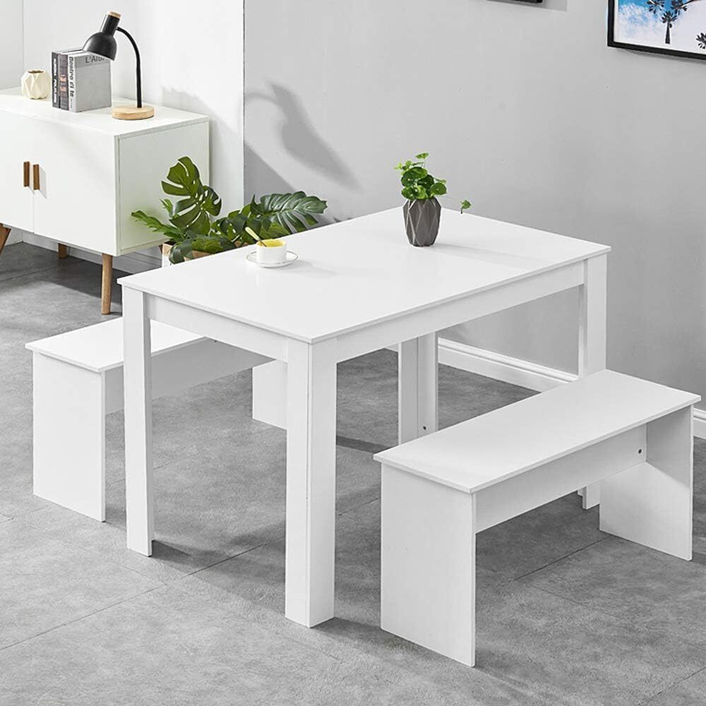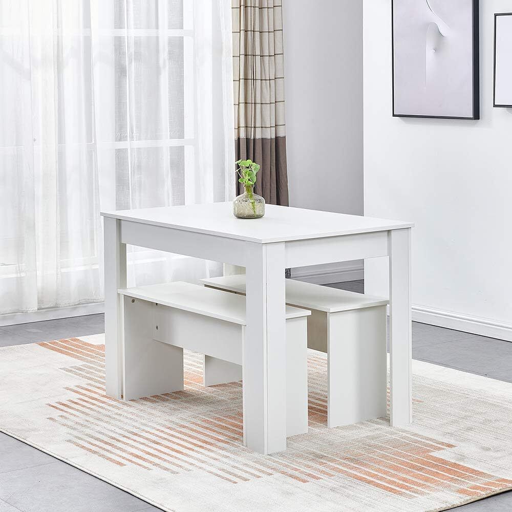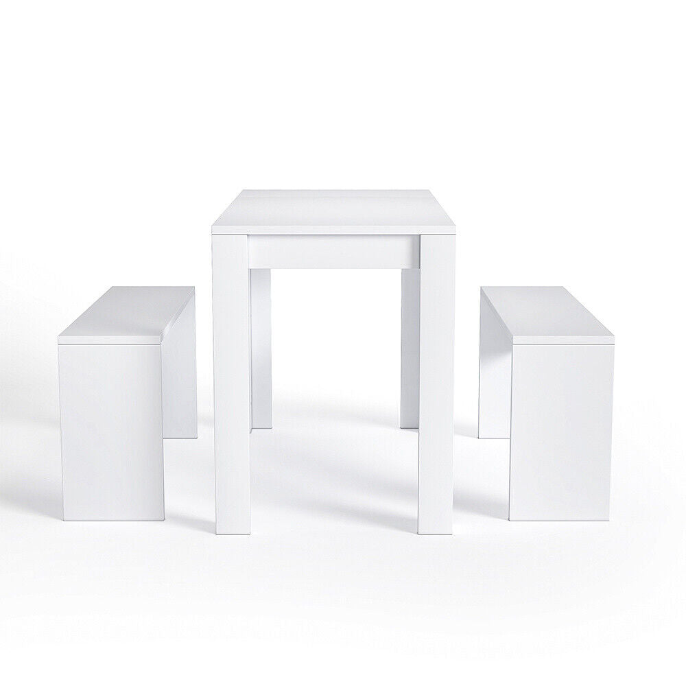 Modern Dining Table Set Table & 2 Benches Seats Compact Kitchen Restaurant