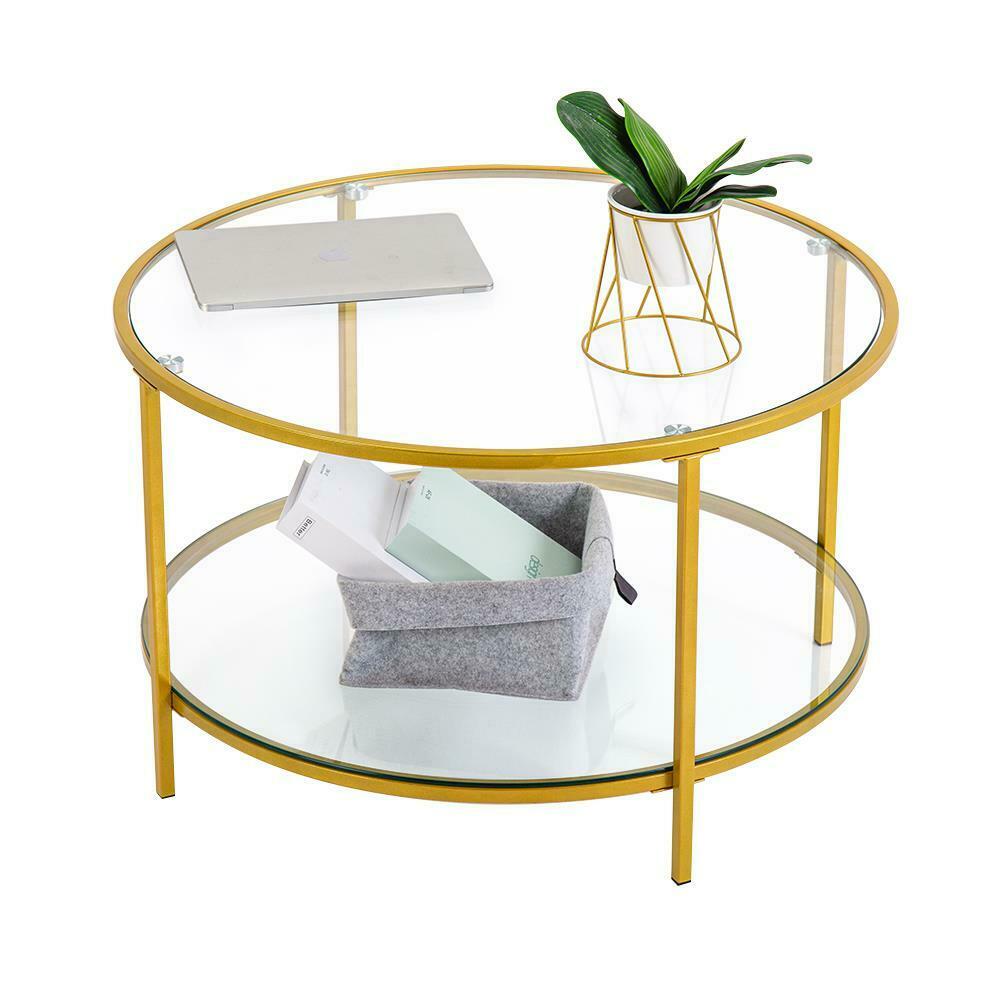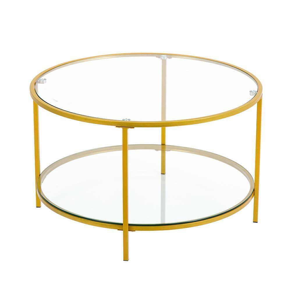 Modern Double Glass Gold Round Glass Coffee Table Side End Living Room