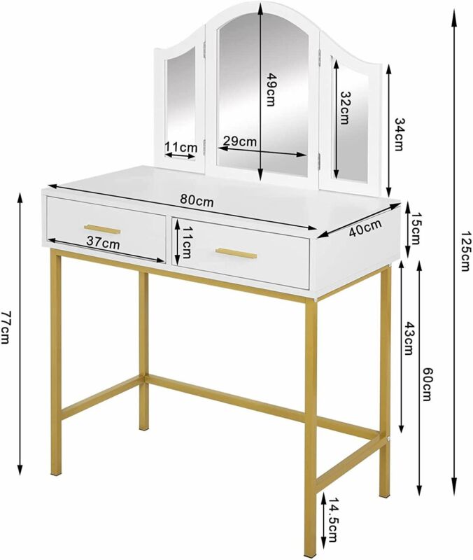 Modern Dressing Table Jewelry Makeup Desk w/ Large Mirror & Drawer Bedroom