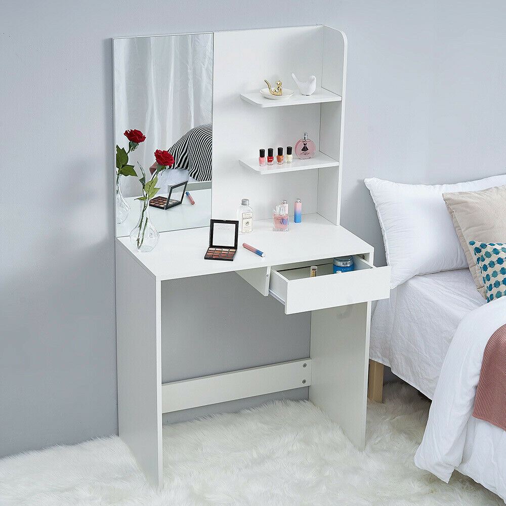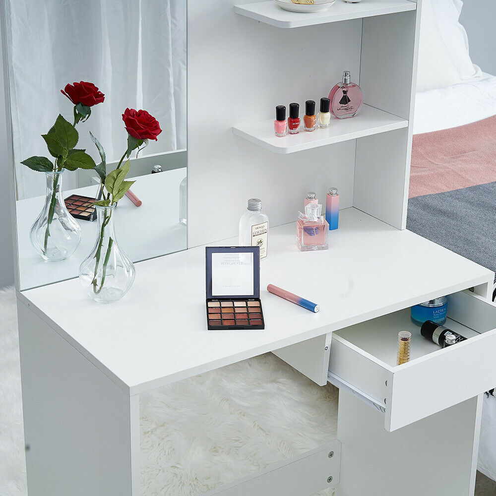 Modern Dressing Table Jewelry Makeup Desk w/ Mirror Drawer Bedroom White UK