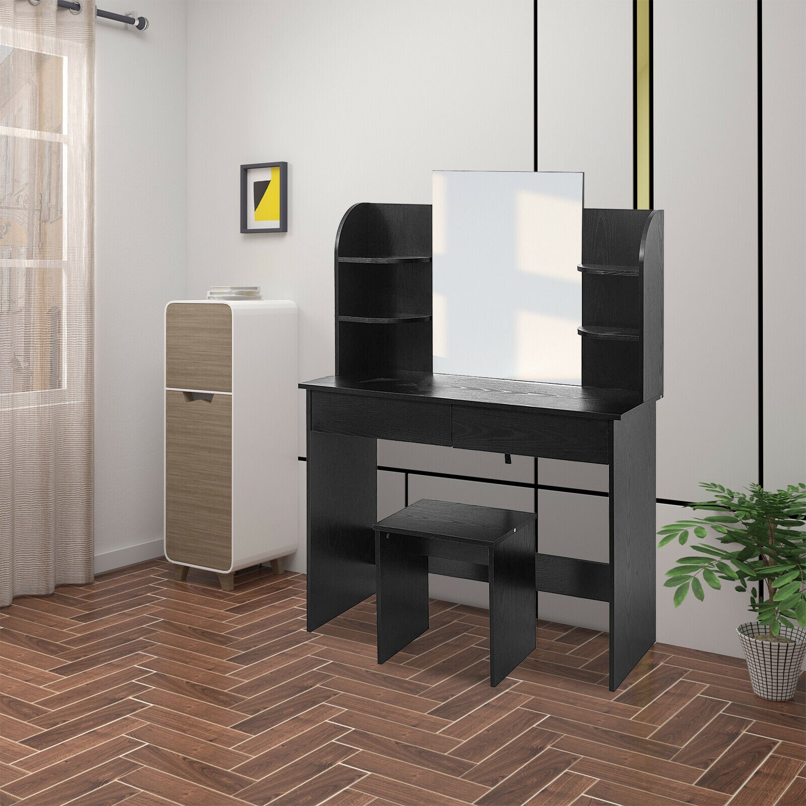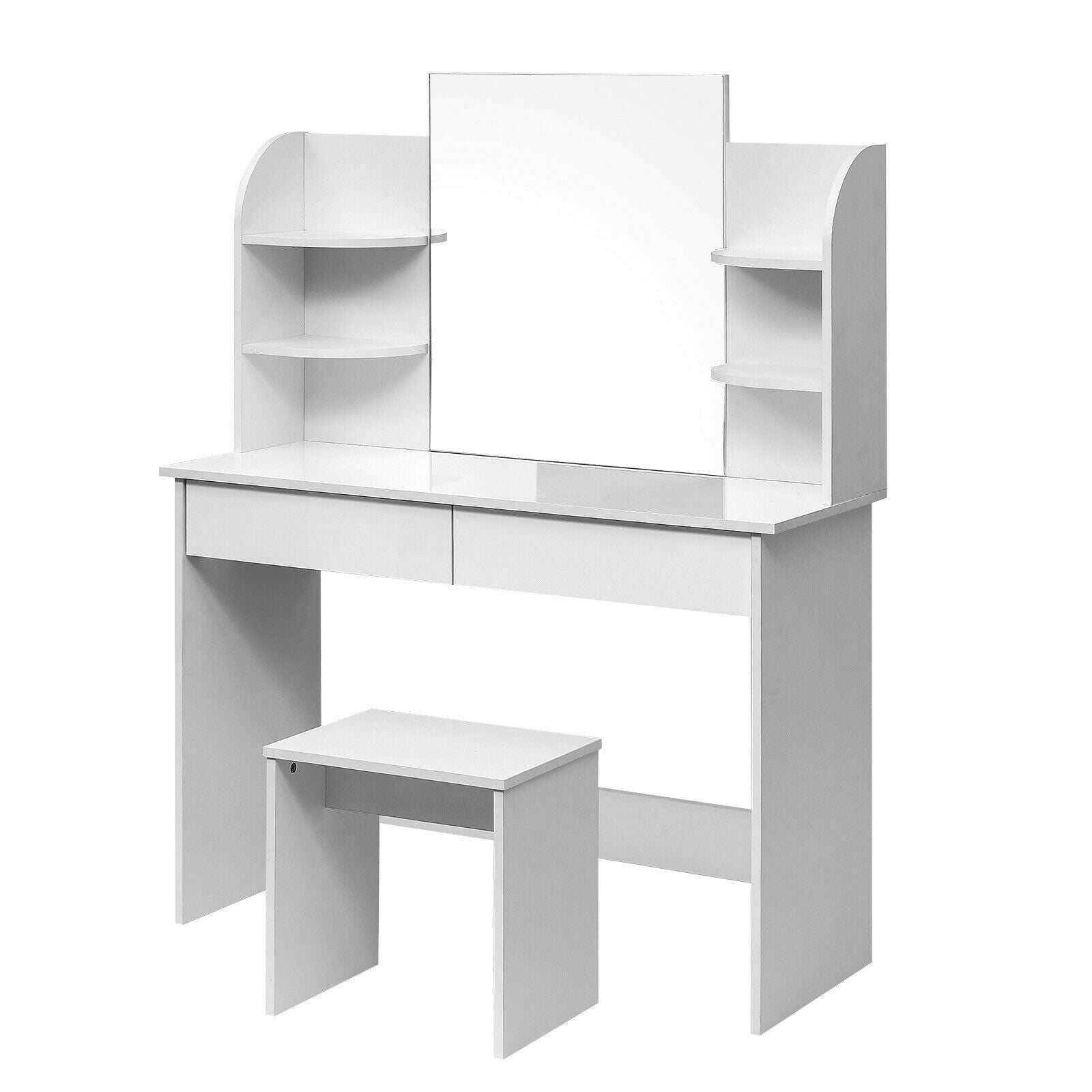 Modern Dressing Table Makeup Desk with Mirror&Drawer Stool Bedroom white Black