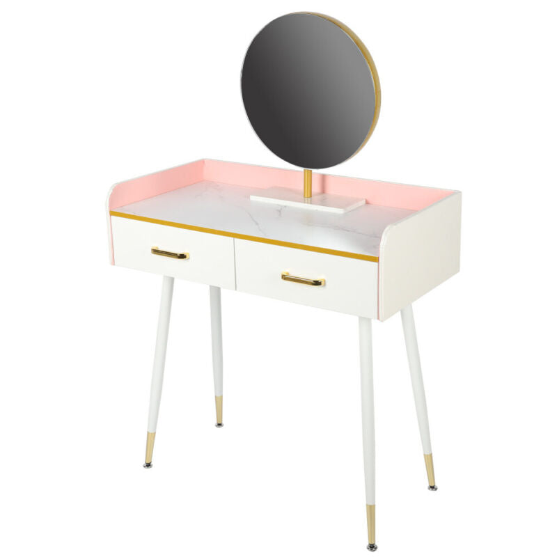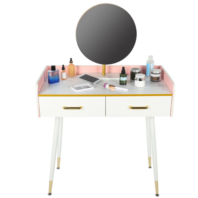 Modern Dressing Table Stool Bedroom Vanity Set Makeup Desk W/ Mirror & 2 Drawers