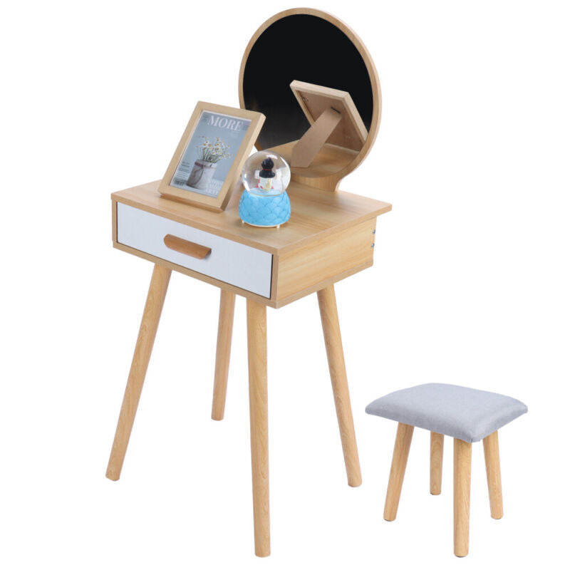 Modern Dressing Table Stool Vanity Set Makeup Desk with Mirror Drawer Stool