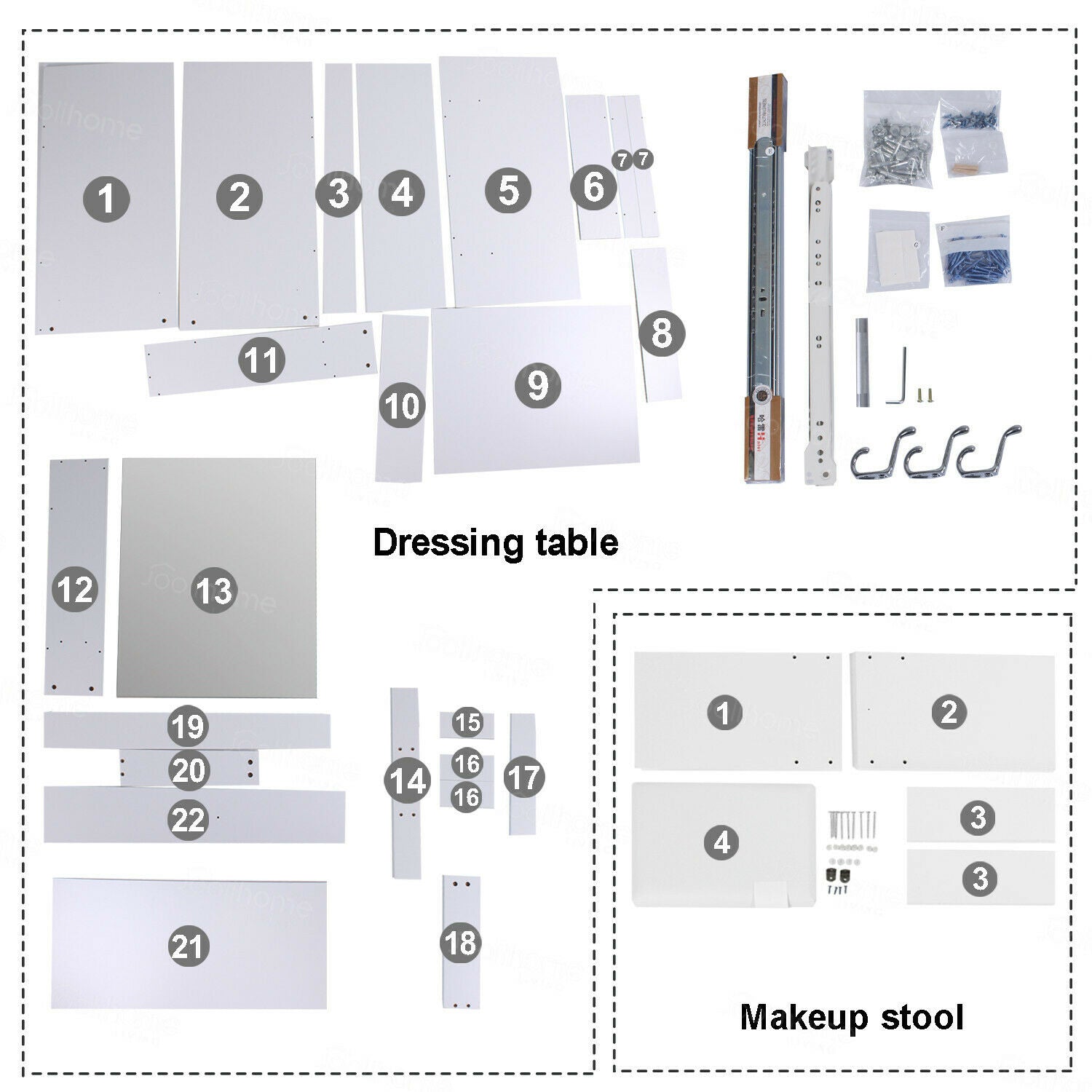 Features: Flat Pack, Mirrored, With Mirror, With Stool