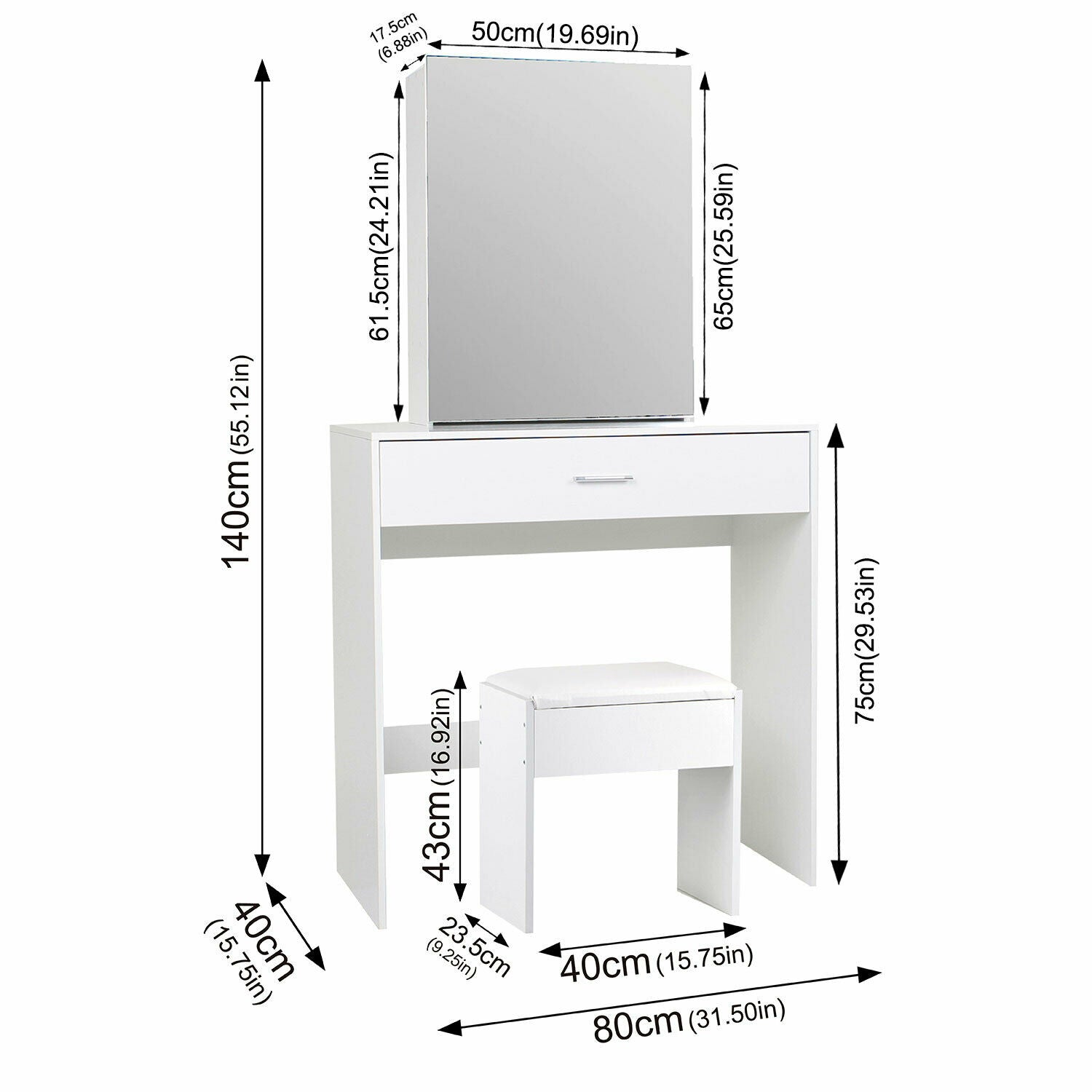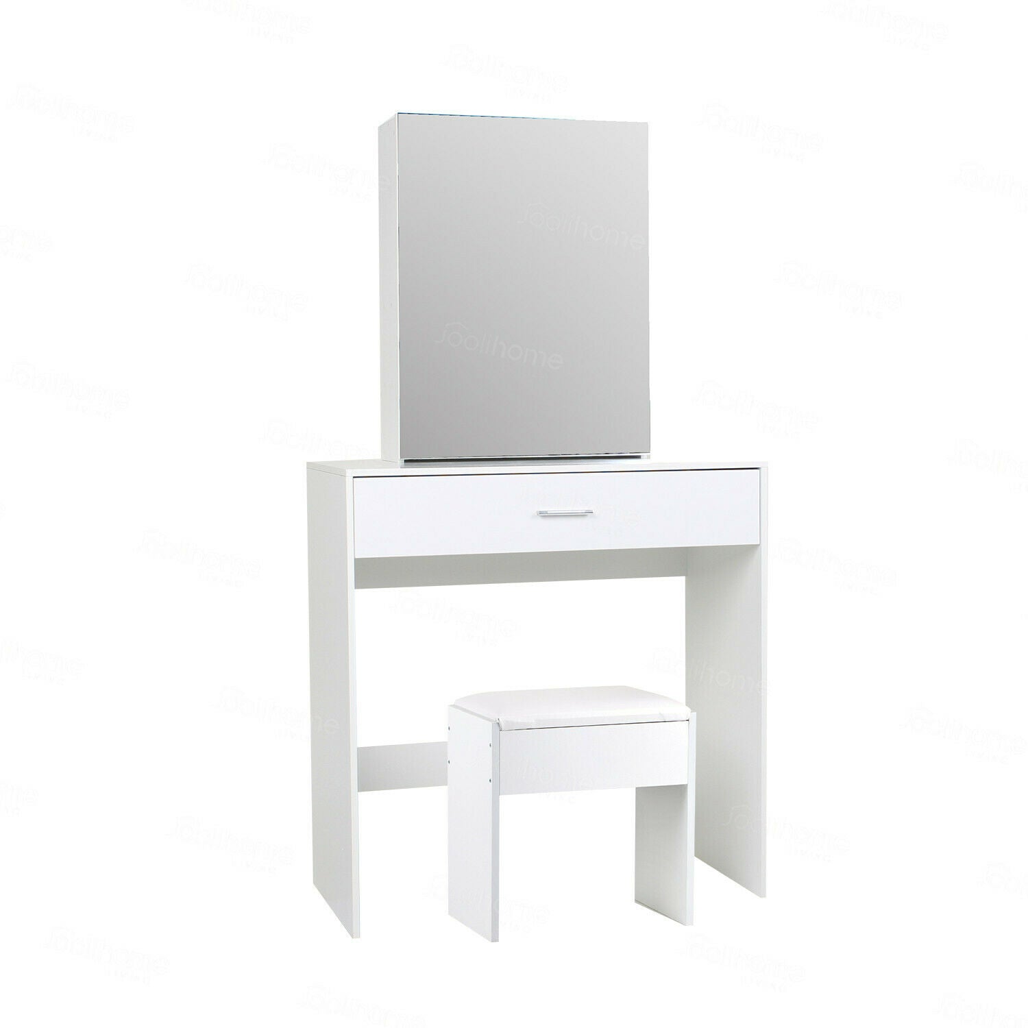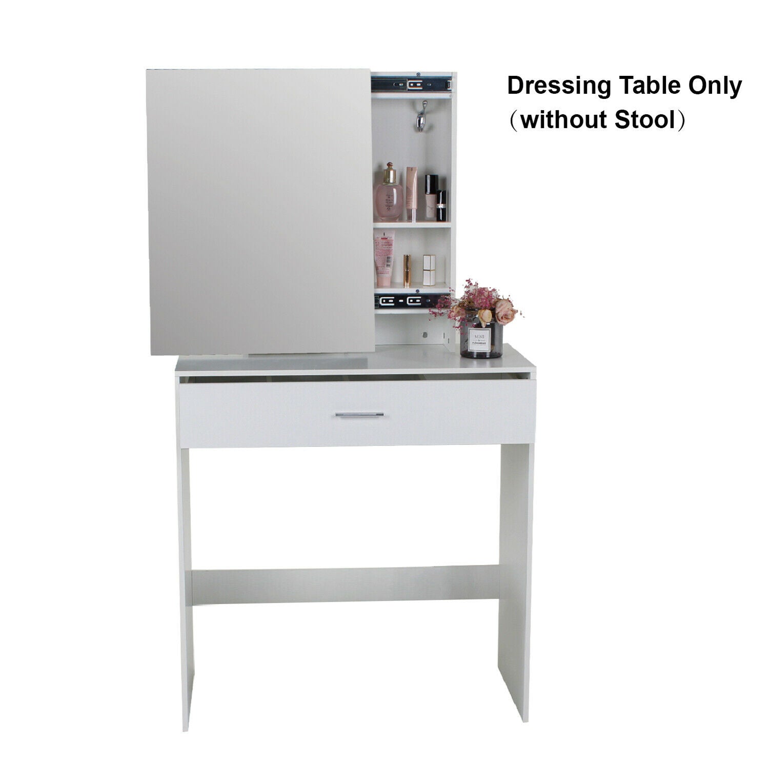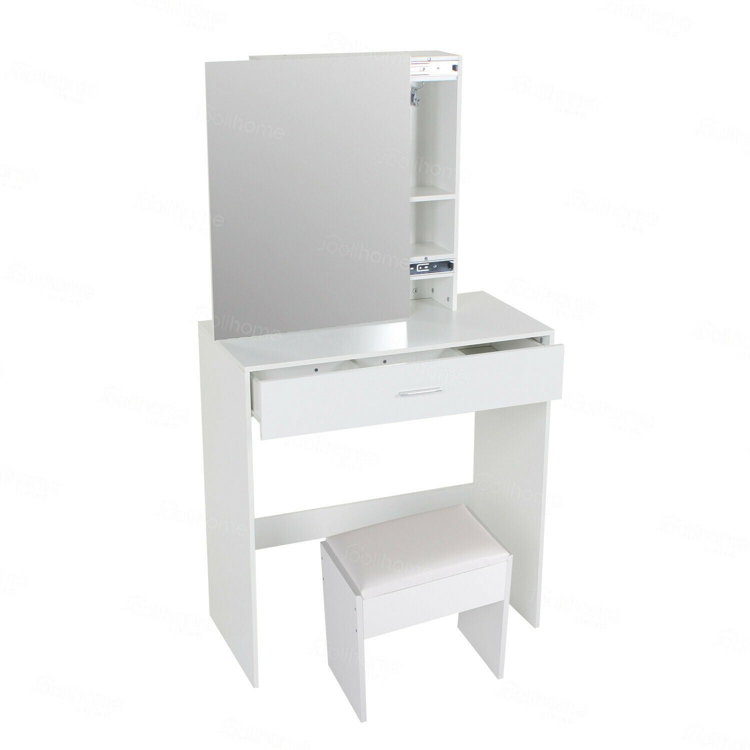 Modern Dressing Table+Stool w/ Drawer&Sliding Mirror Makeup Desk White Bedroom