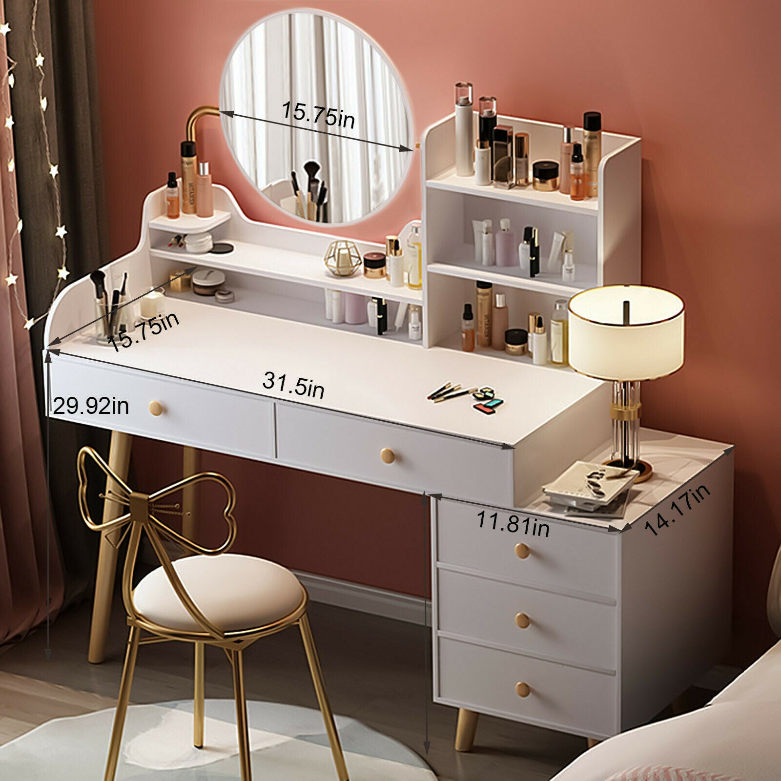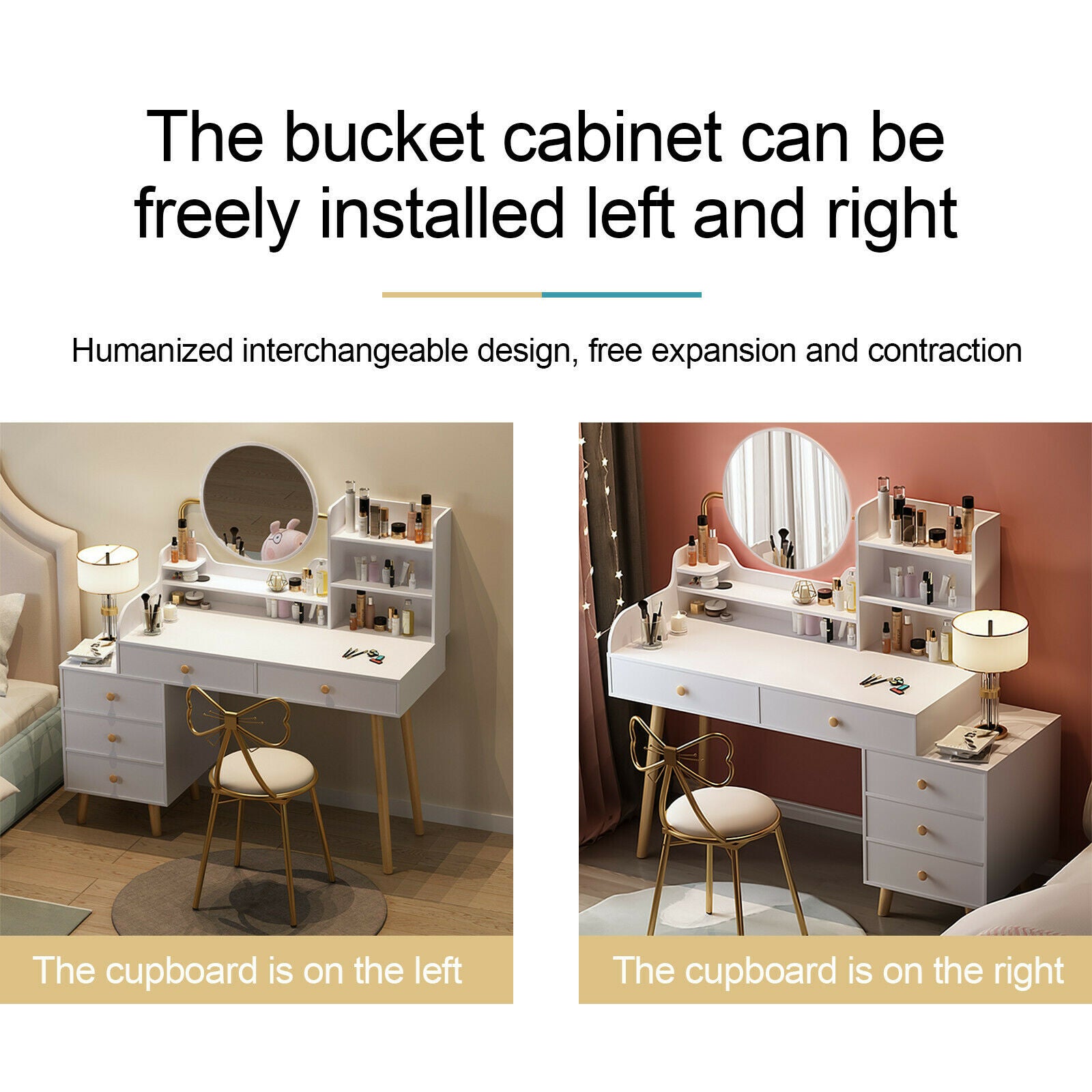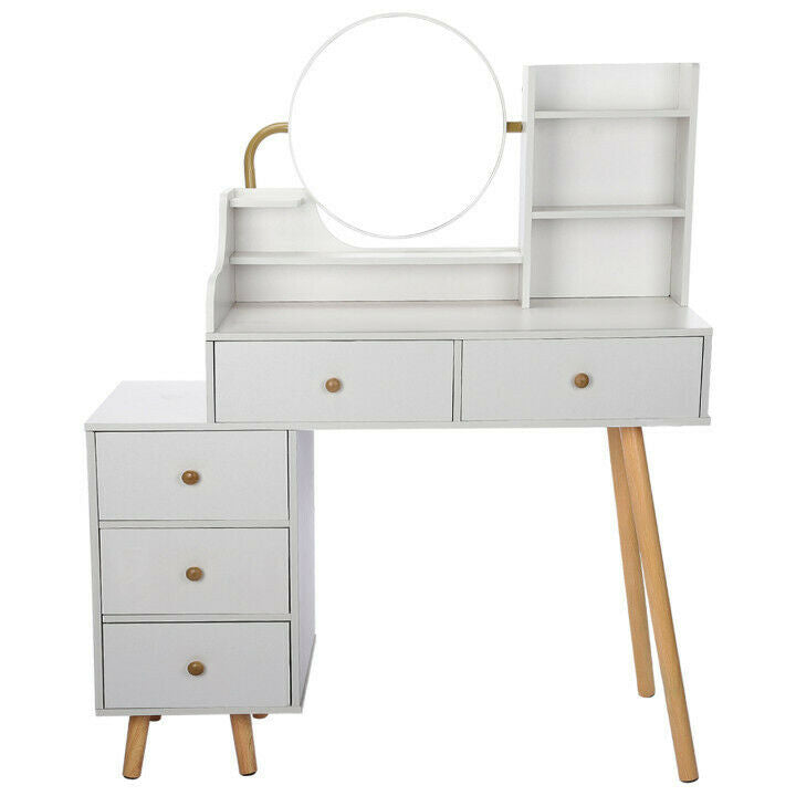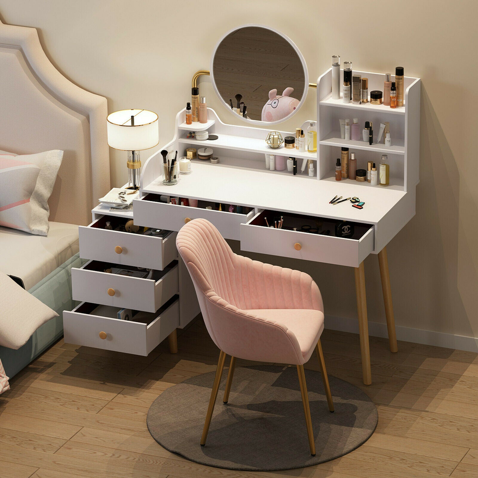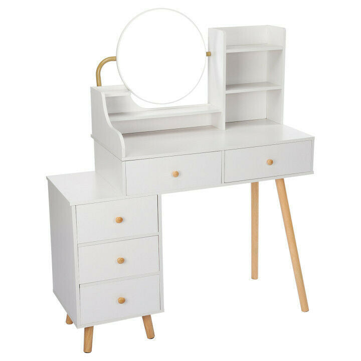 Modern Dressing Table Vanity Set Makeup Desk w/ Mirror & 5 Drawers 4 Shelves