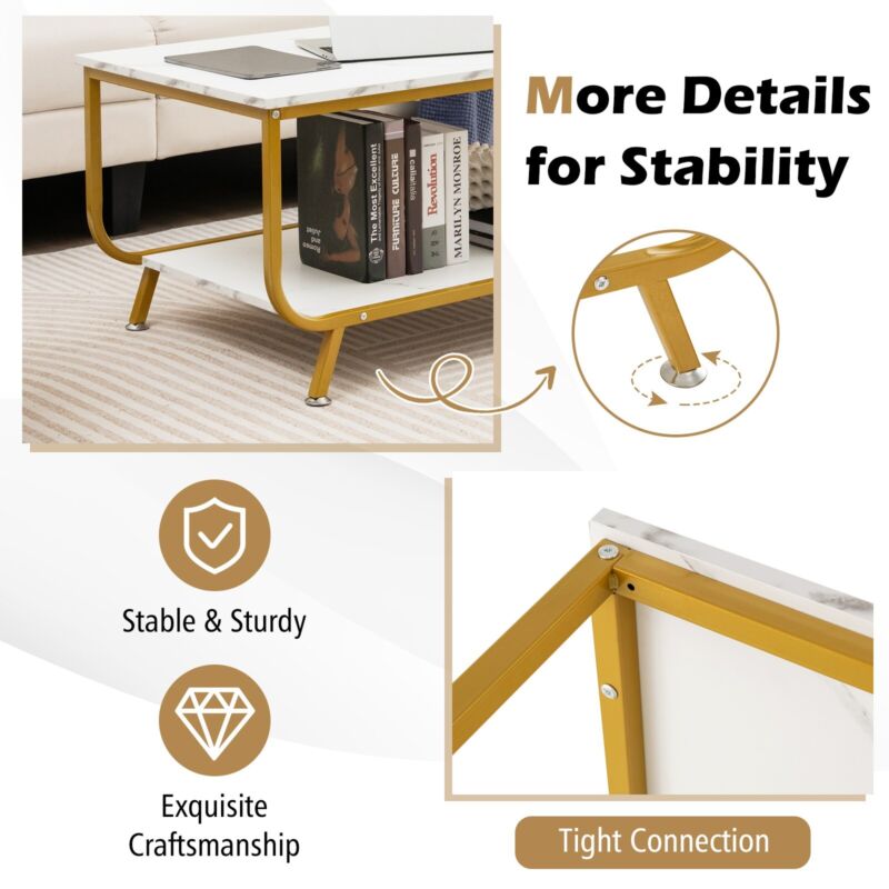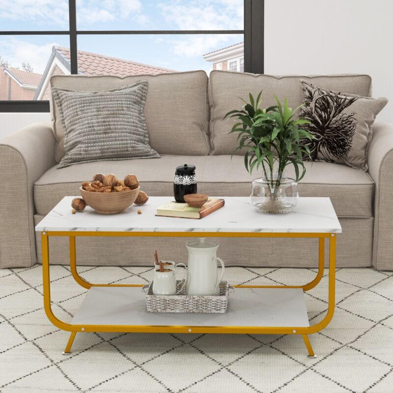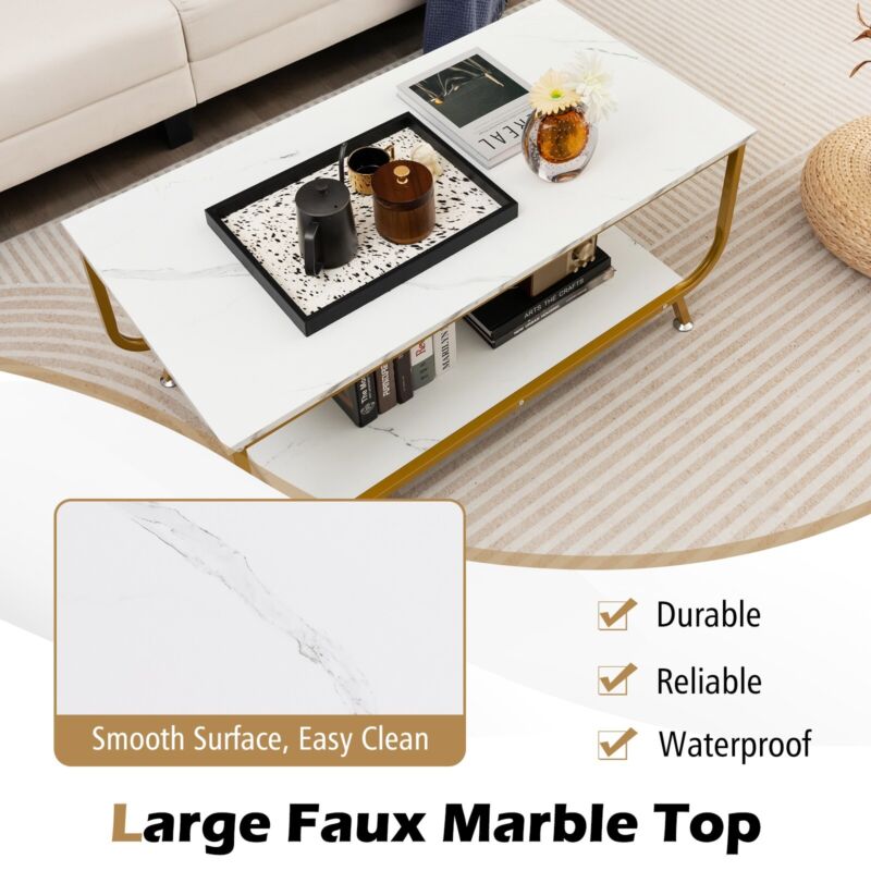 Modern Faux Marble Coffee Table 2-Tier Rectangular Accent Table Chic Cocktail