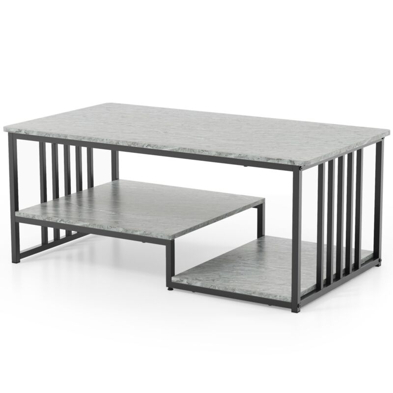 Modern Faux Marble Coffee Table 2-Tier Rectangular Accent Table Chic Cocktail