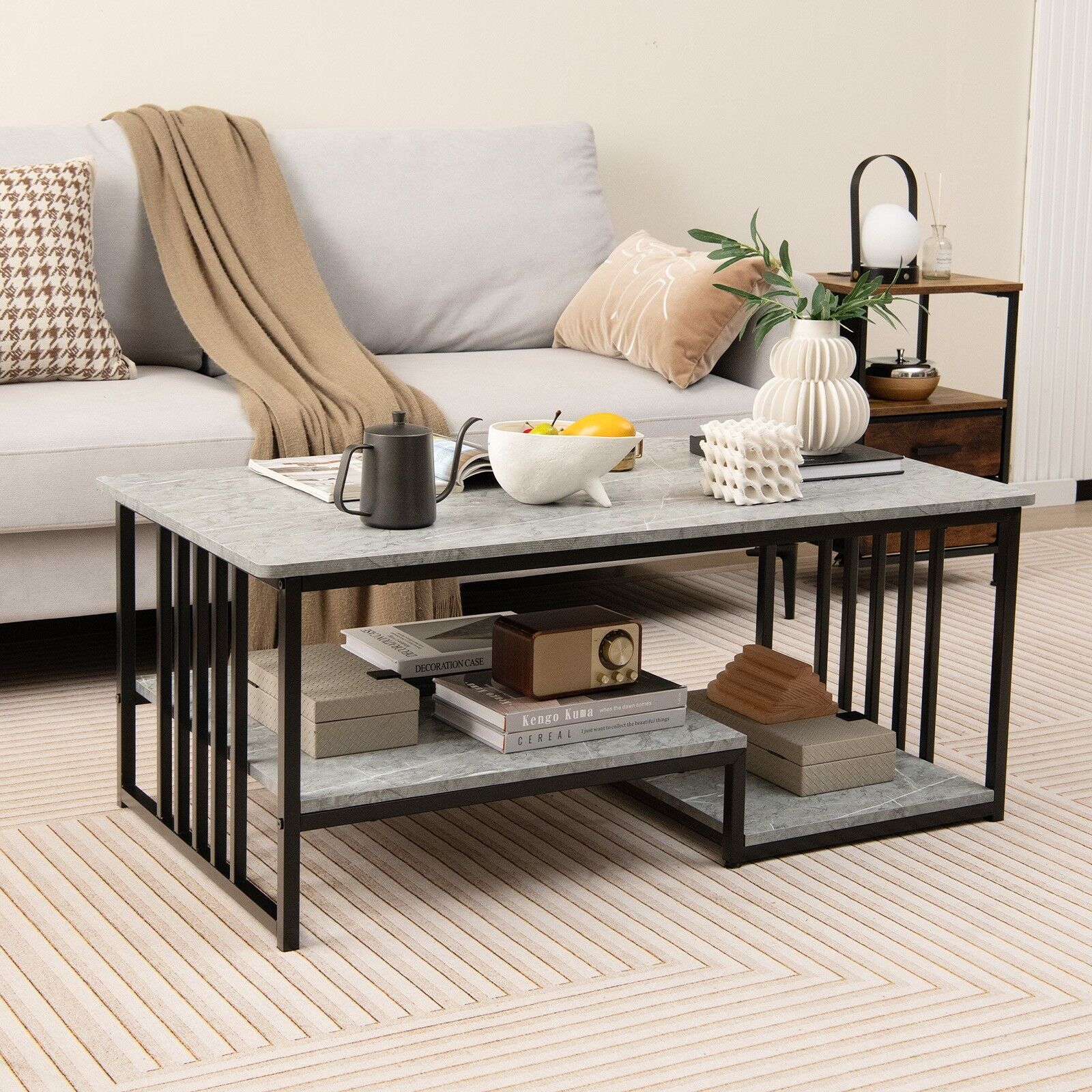 Modern Faux Marble Coffee Table 2-Tier Rectangular Accent Table Chic Cocktail