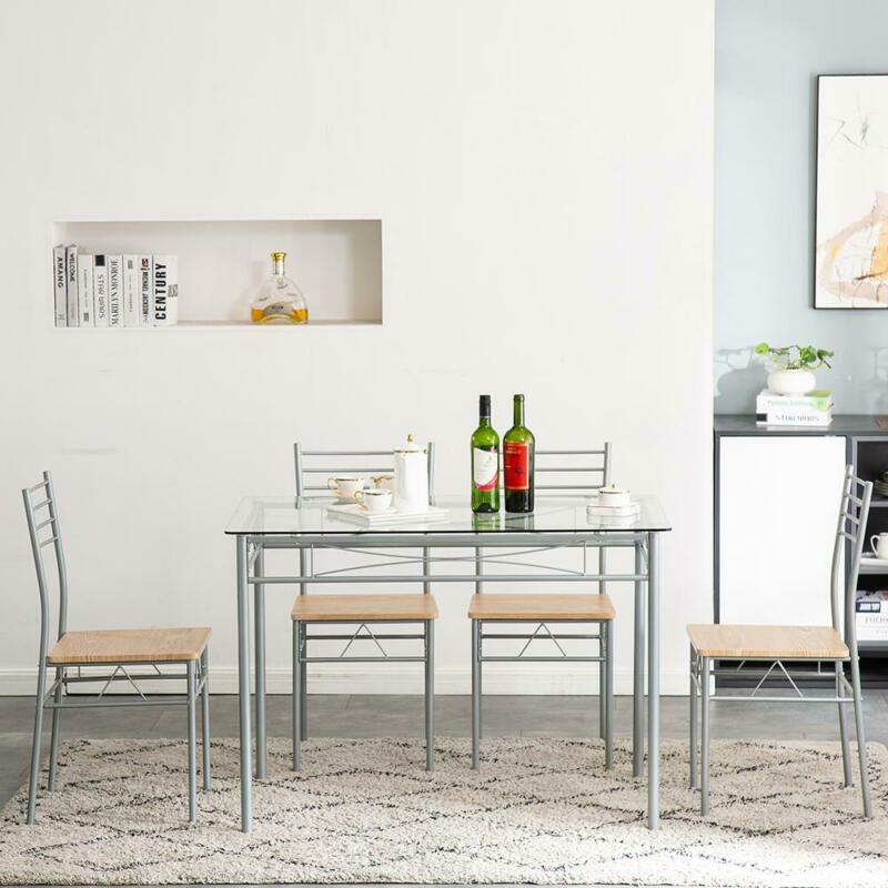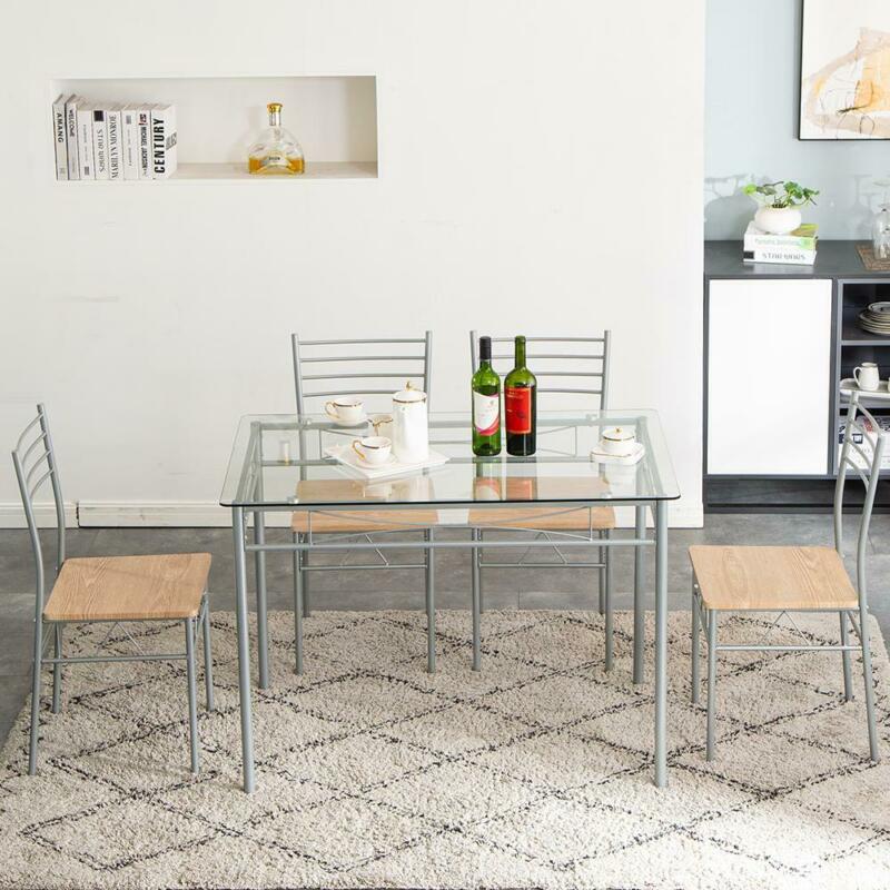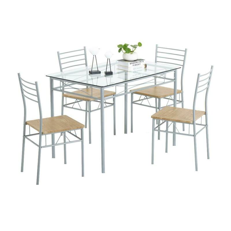 Modern Glass Dining Table and 4 Chairs Set MDF Cushion Home Kitchen Furniture