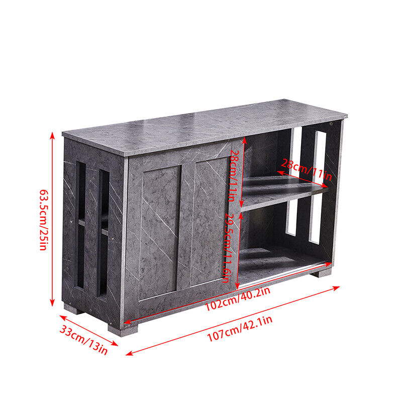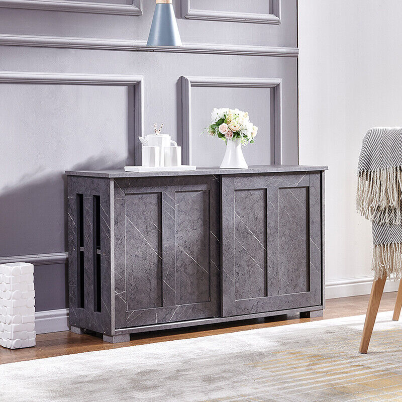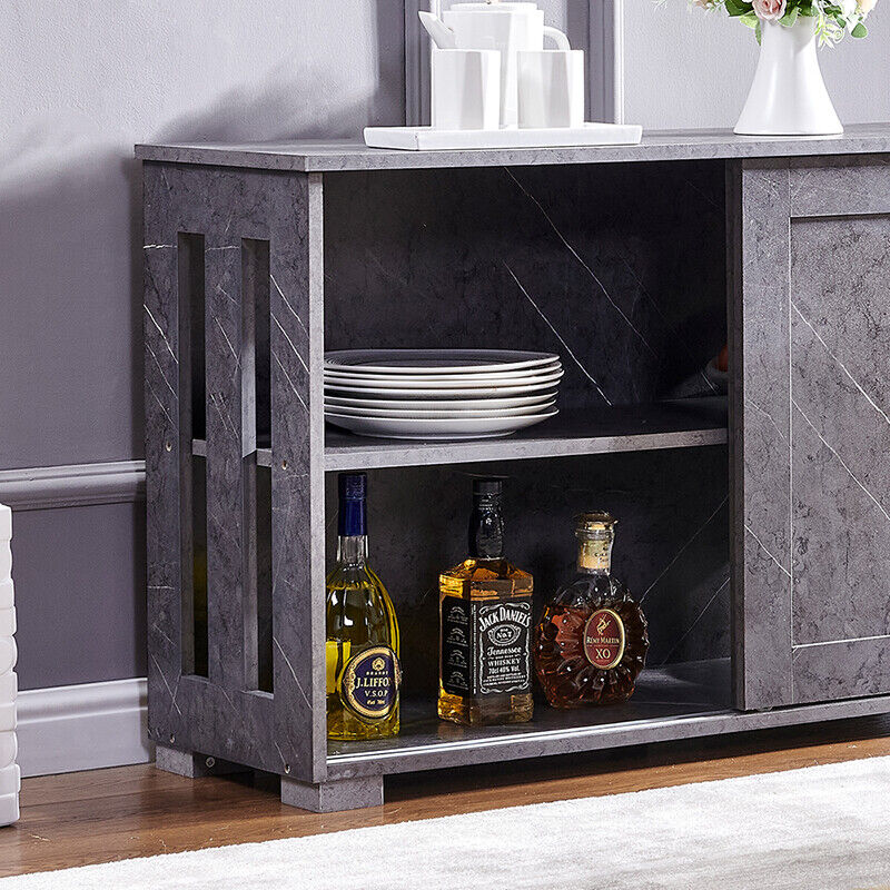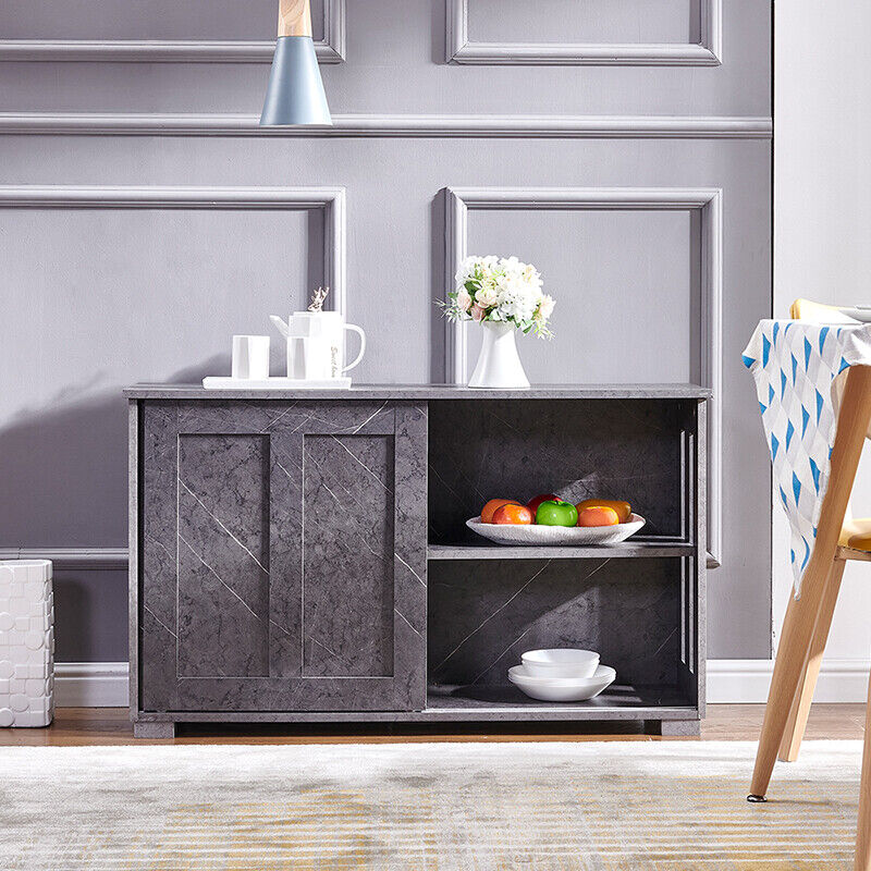 Modern Grey 2 Sliding Doors 2-Tier Shelves Sideboard Storage Cabinet Kitchen