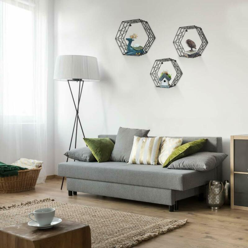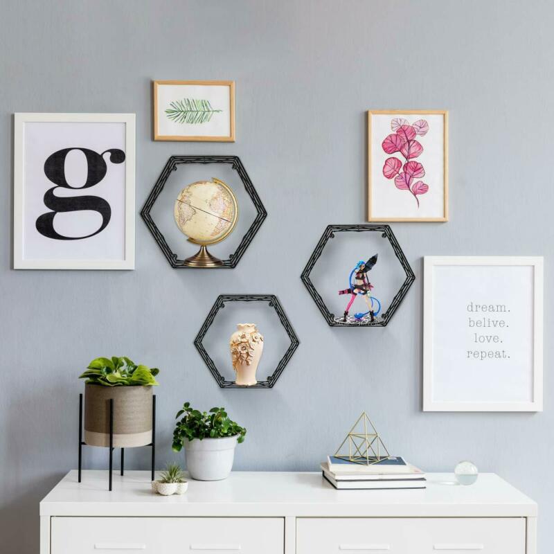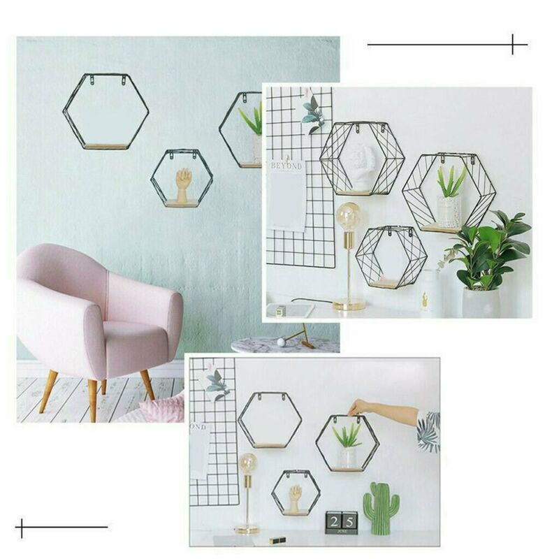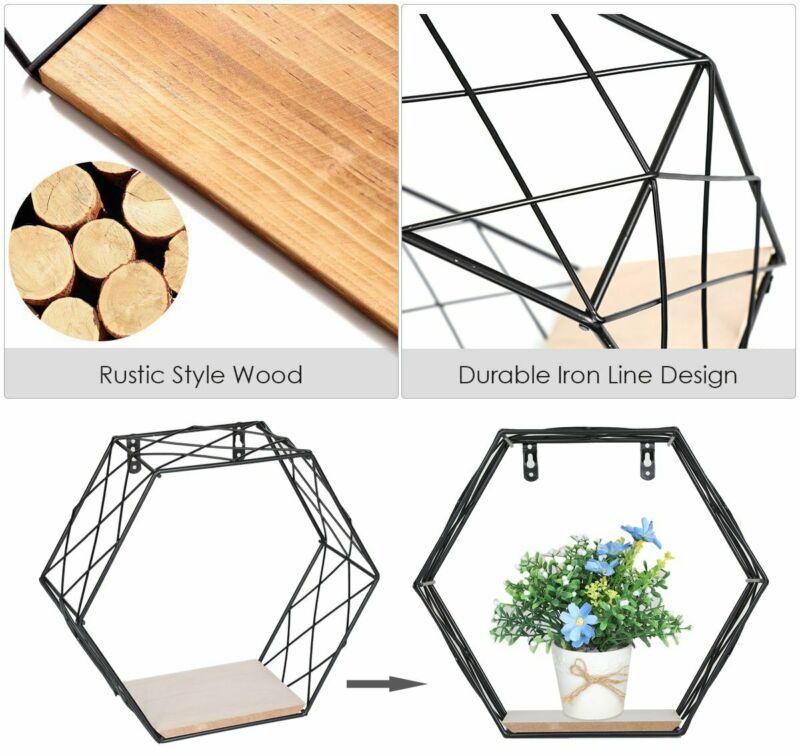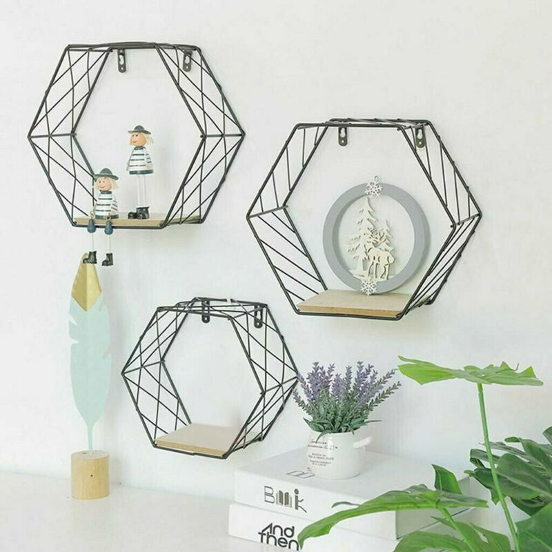 Modern Hexagon Metal Wire Wall Shelf Storage Home Office Decor Floating Shelve