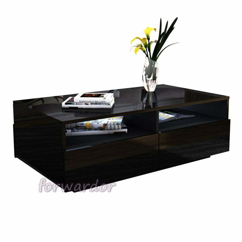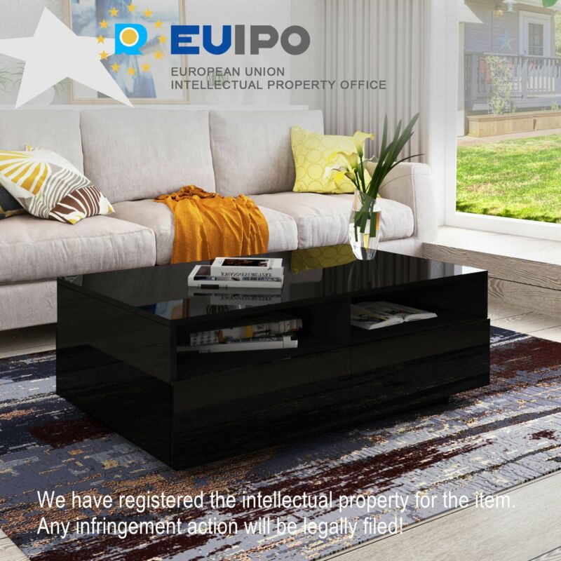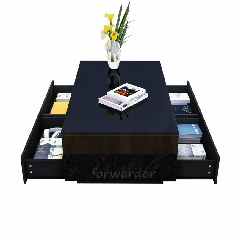 Modern High Gloss Rectangle Coffee Tea Table Solid with 4 Storage Drawers Shelf