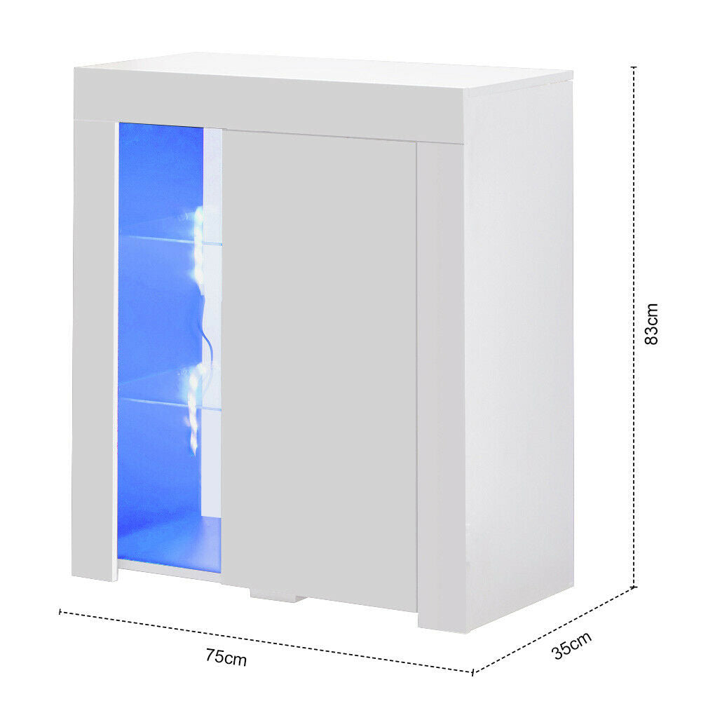 Modern High Gloss White Sideboard Display Cabinet Storage Cupboard RGB LED Light