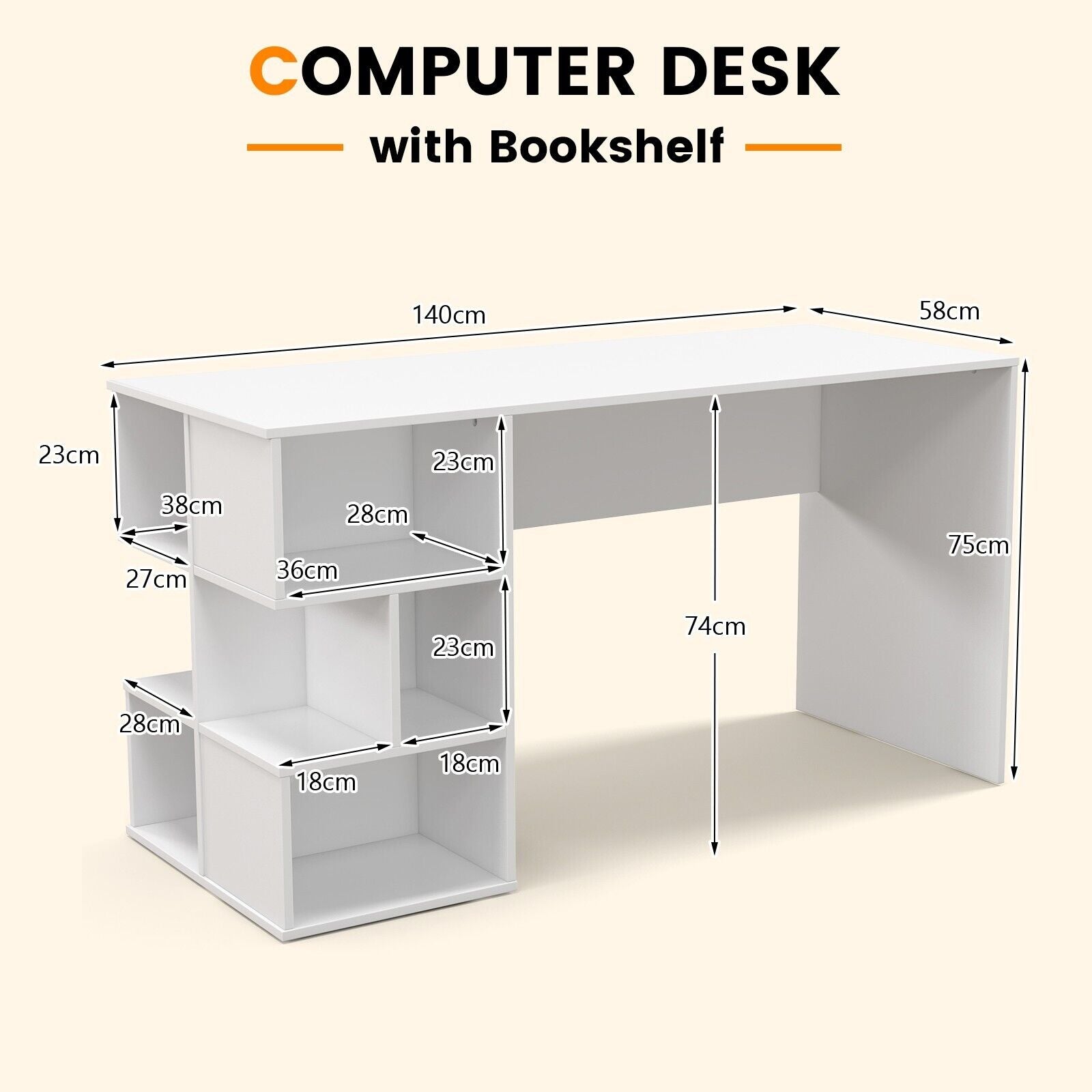Modern Home Office Desk 140cm Computer Desk Study Writing Table with Bookshelf