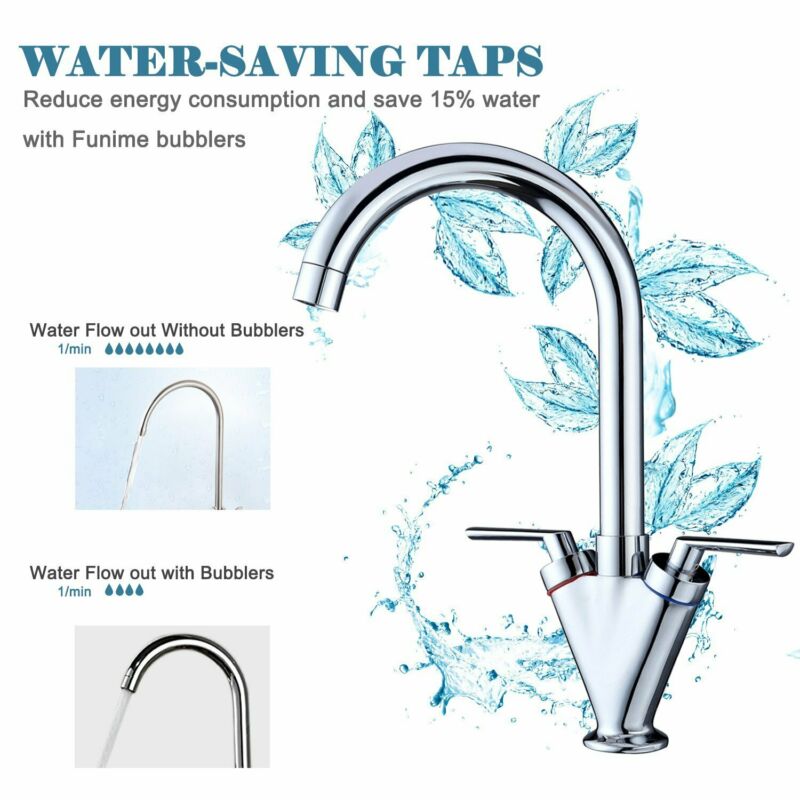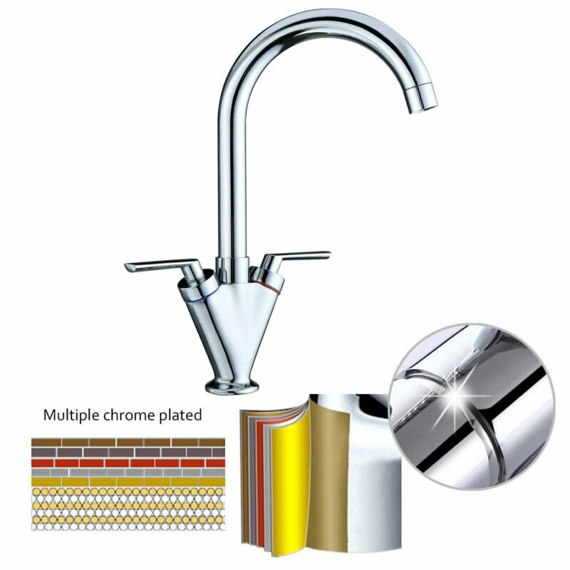 Modern Kitchen Sink Mixer Tap Chrome Monobloc Basin Twin Lever Taps Swivel 360°