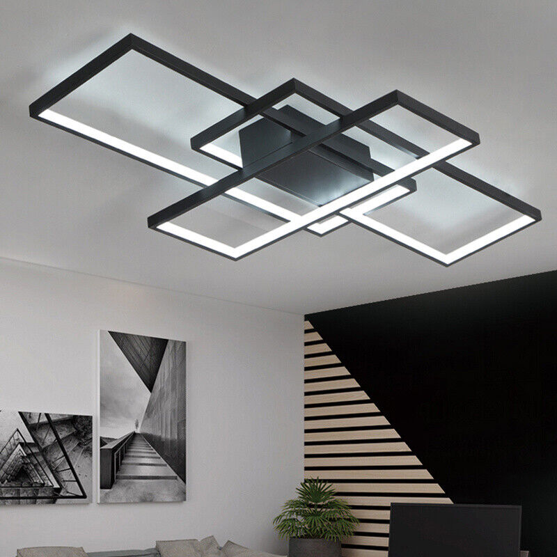 Modern Lamp Square Black LED Ceiling Light Chandelier Lights Living Dining Room