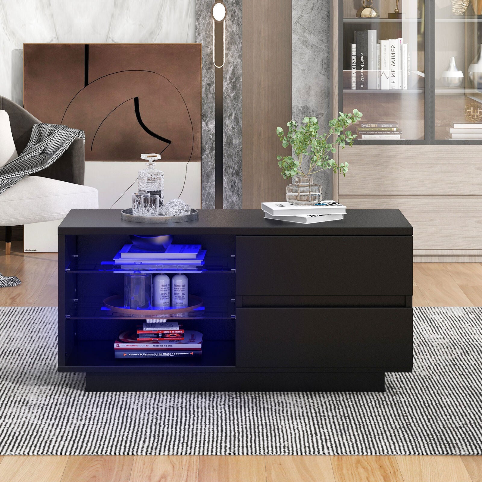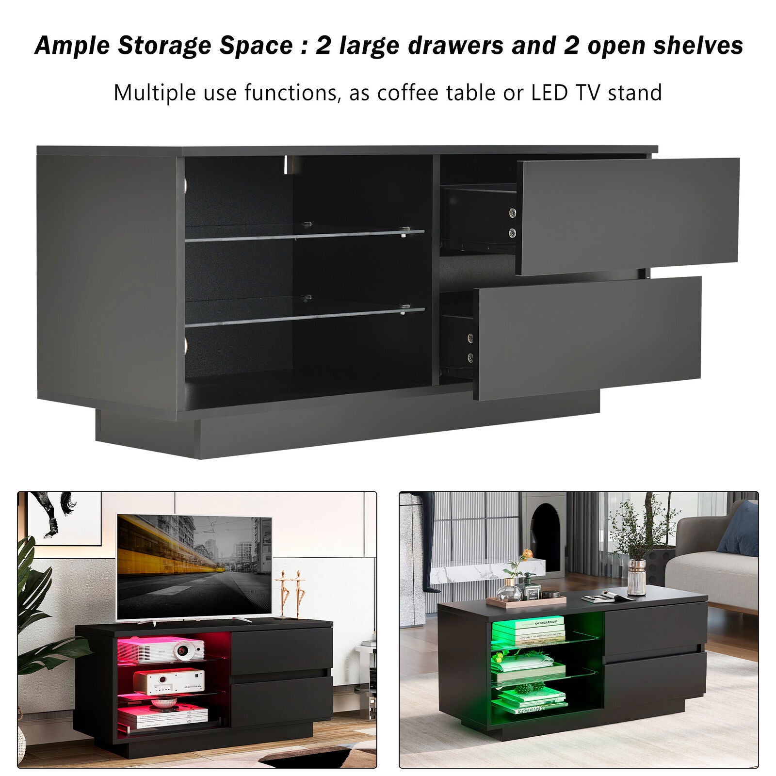 MODERN LED COFFEE TABLE SIDE END TABLE TV STAND CABINET LIVING ROOM FURNITURE