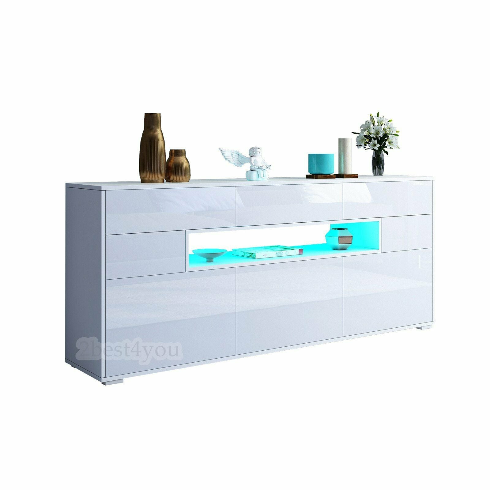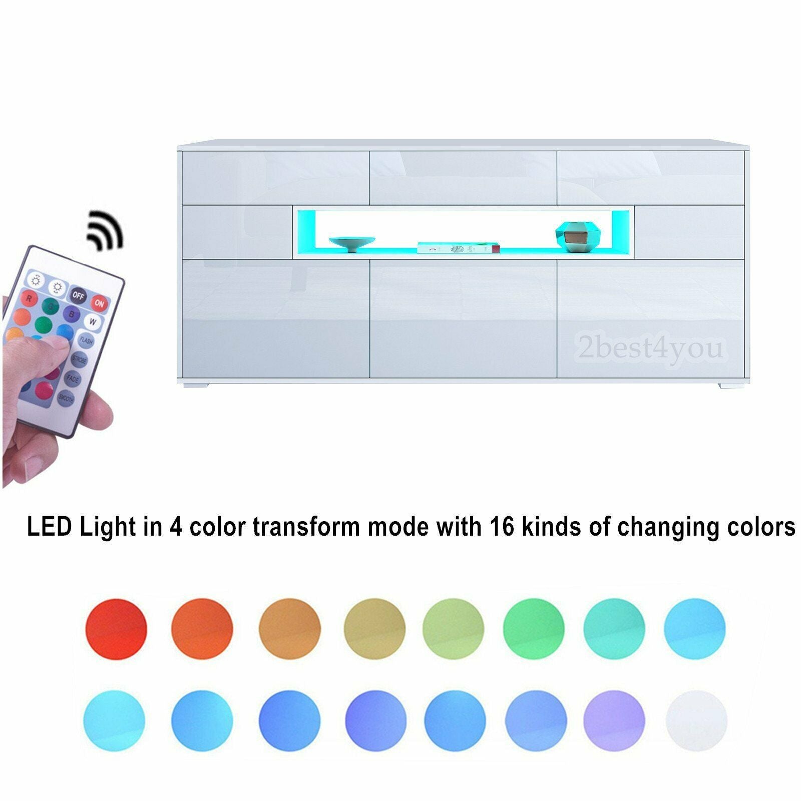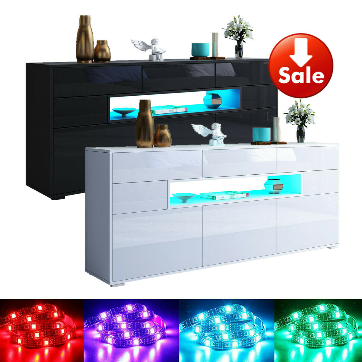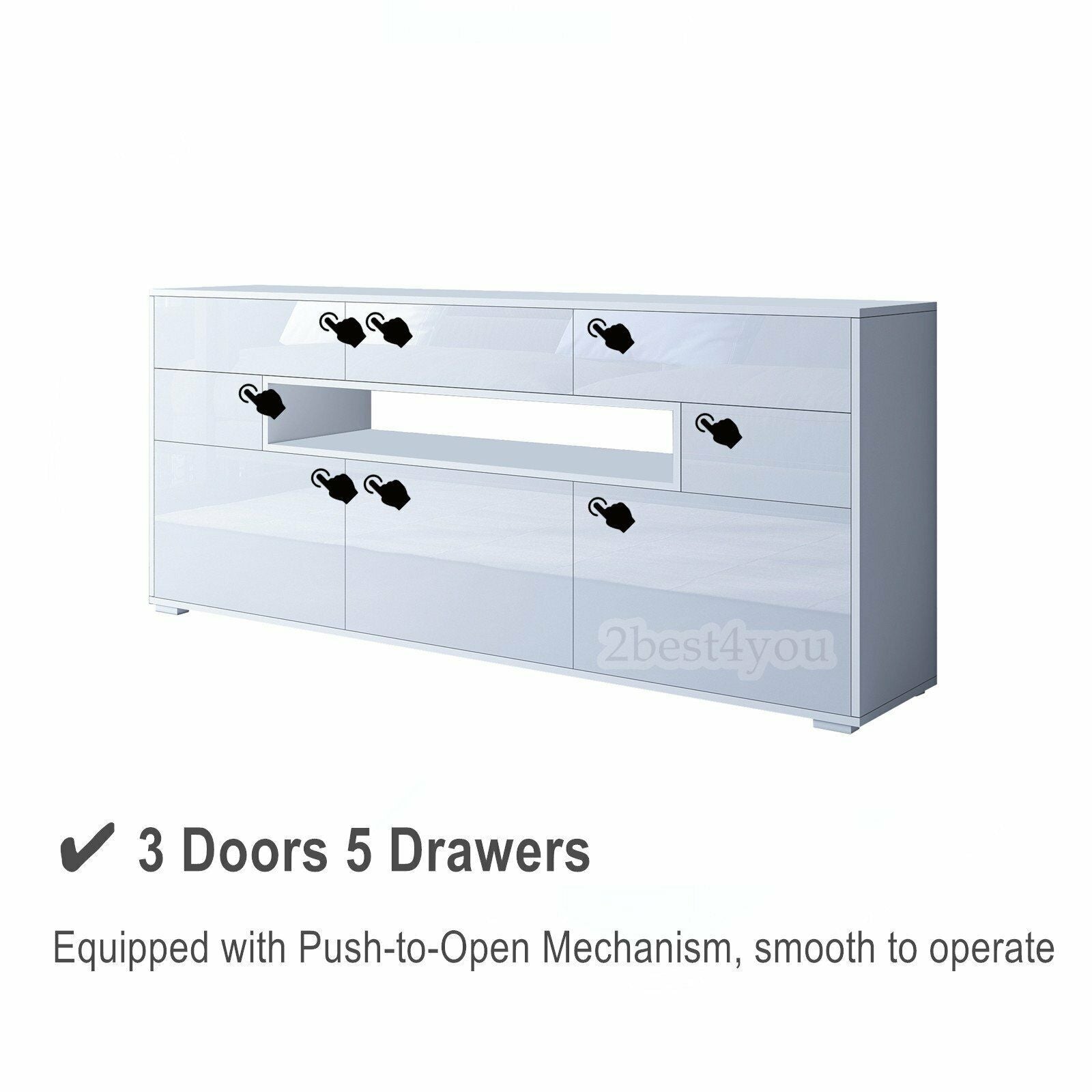 Modern LED Light Sideboard TV Cabinet Stand Unit High Gloss 3 Doors 5 Drawers