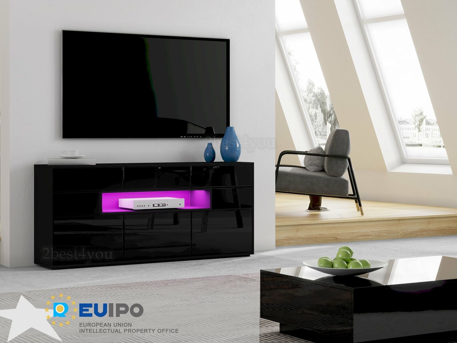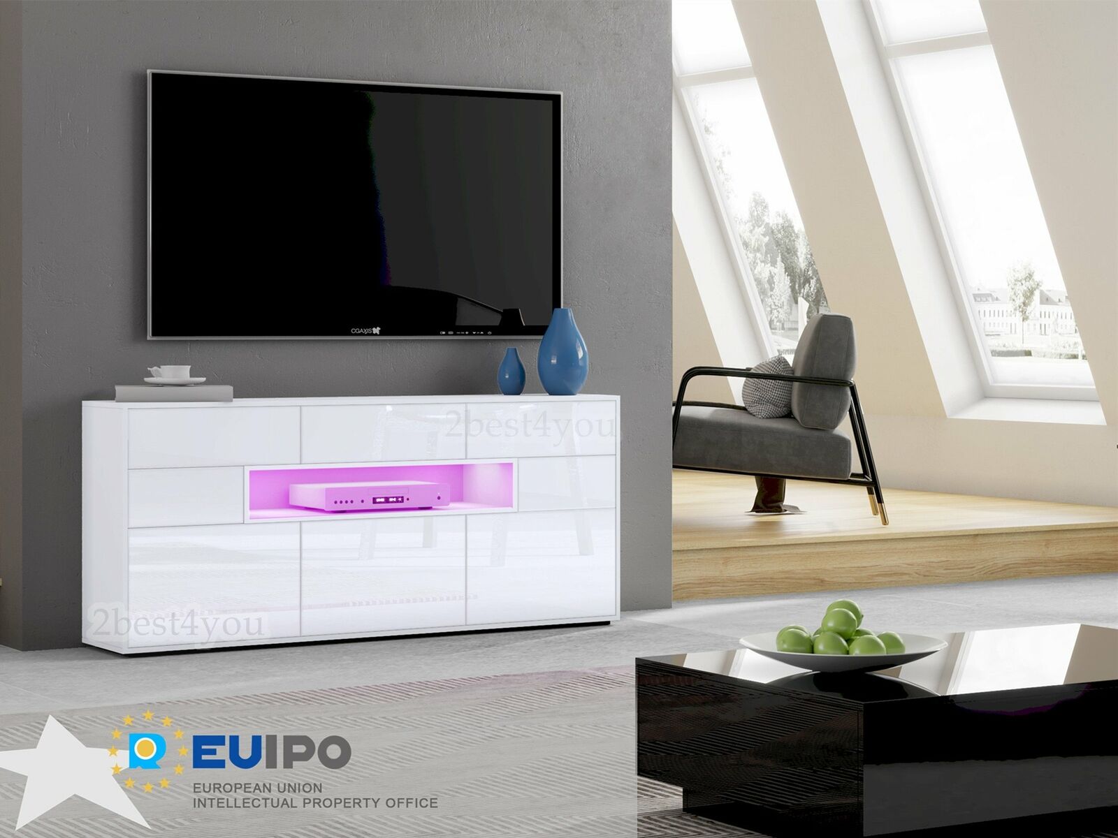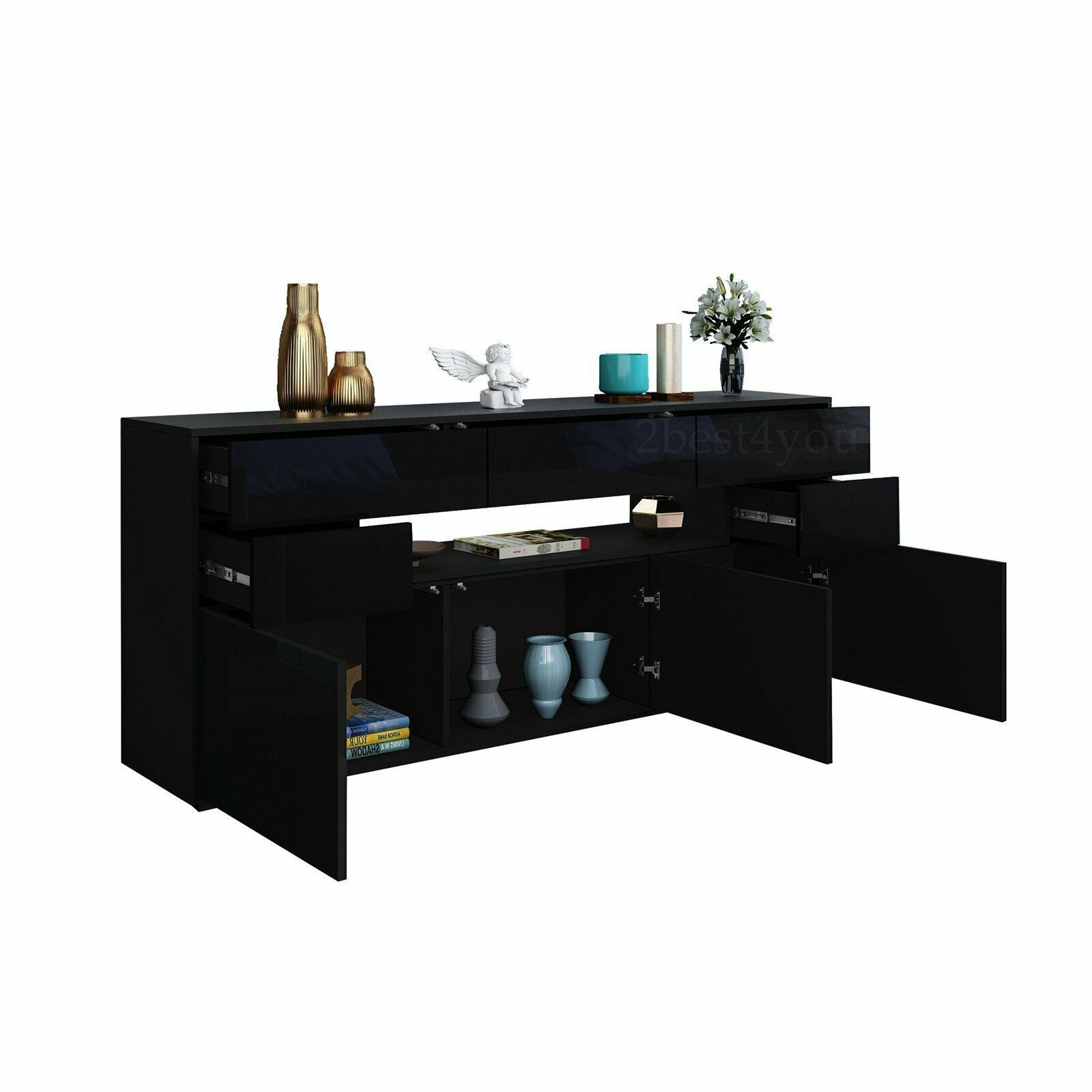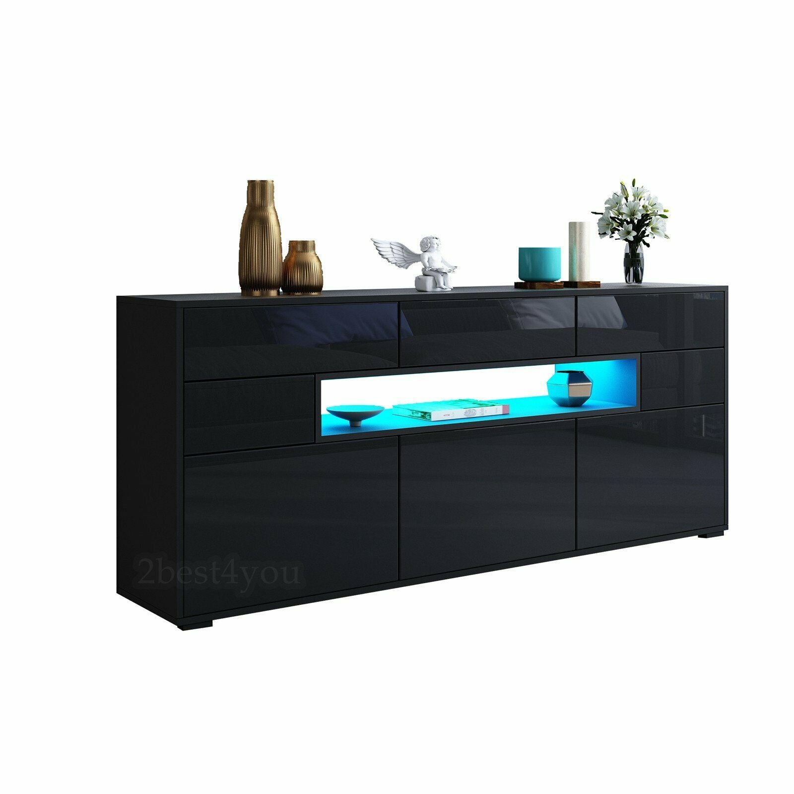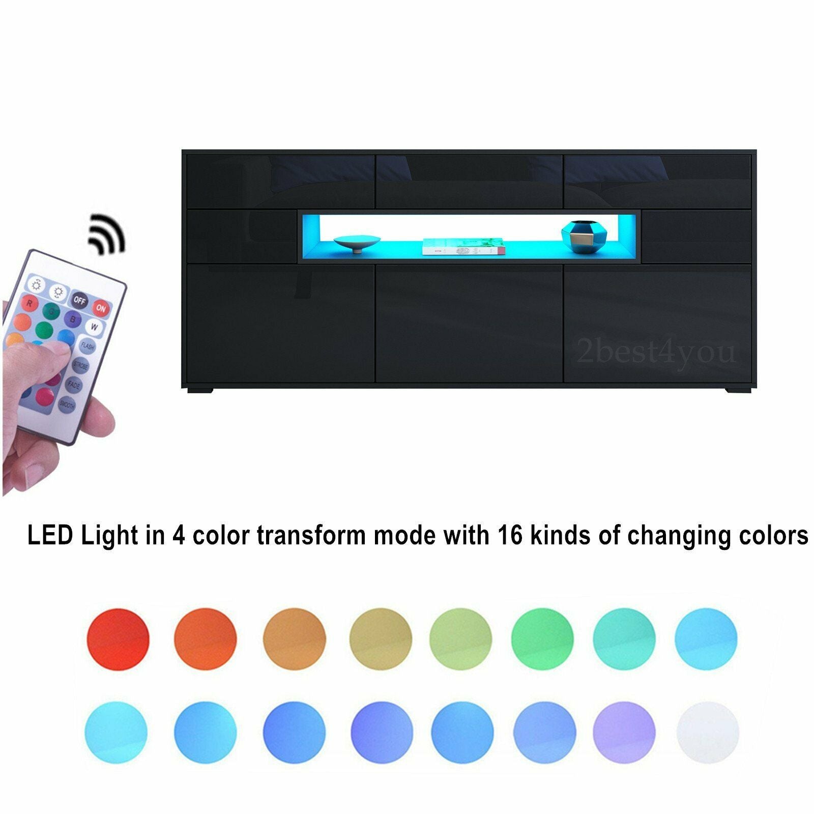 Modern LED Light Sideboard TV Cabinet Stand Unit High Gloss 3 Doors 5 Drawers
