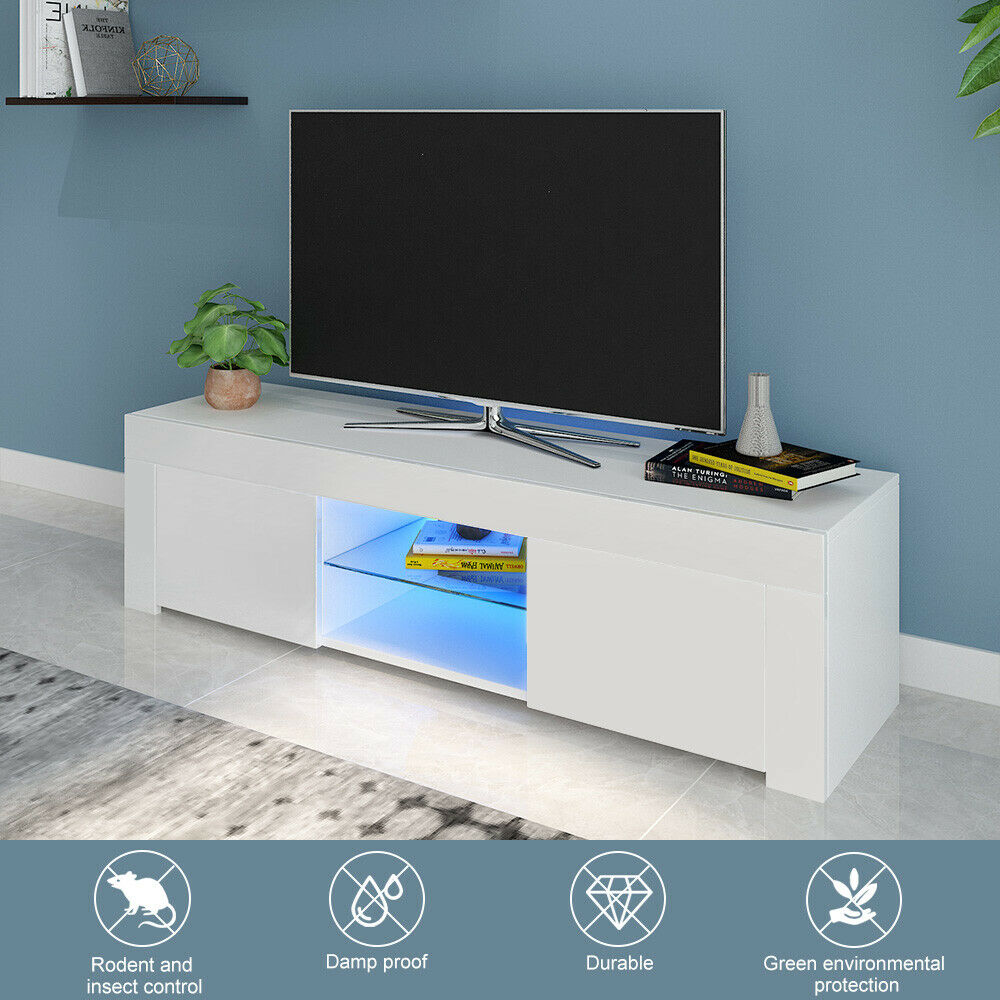 Modern LED Light TV Stand Table With Shelves High Gloss Living Room Furniture