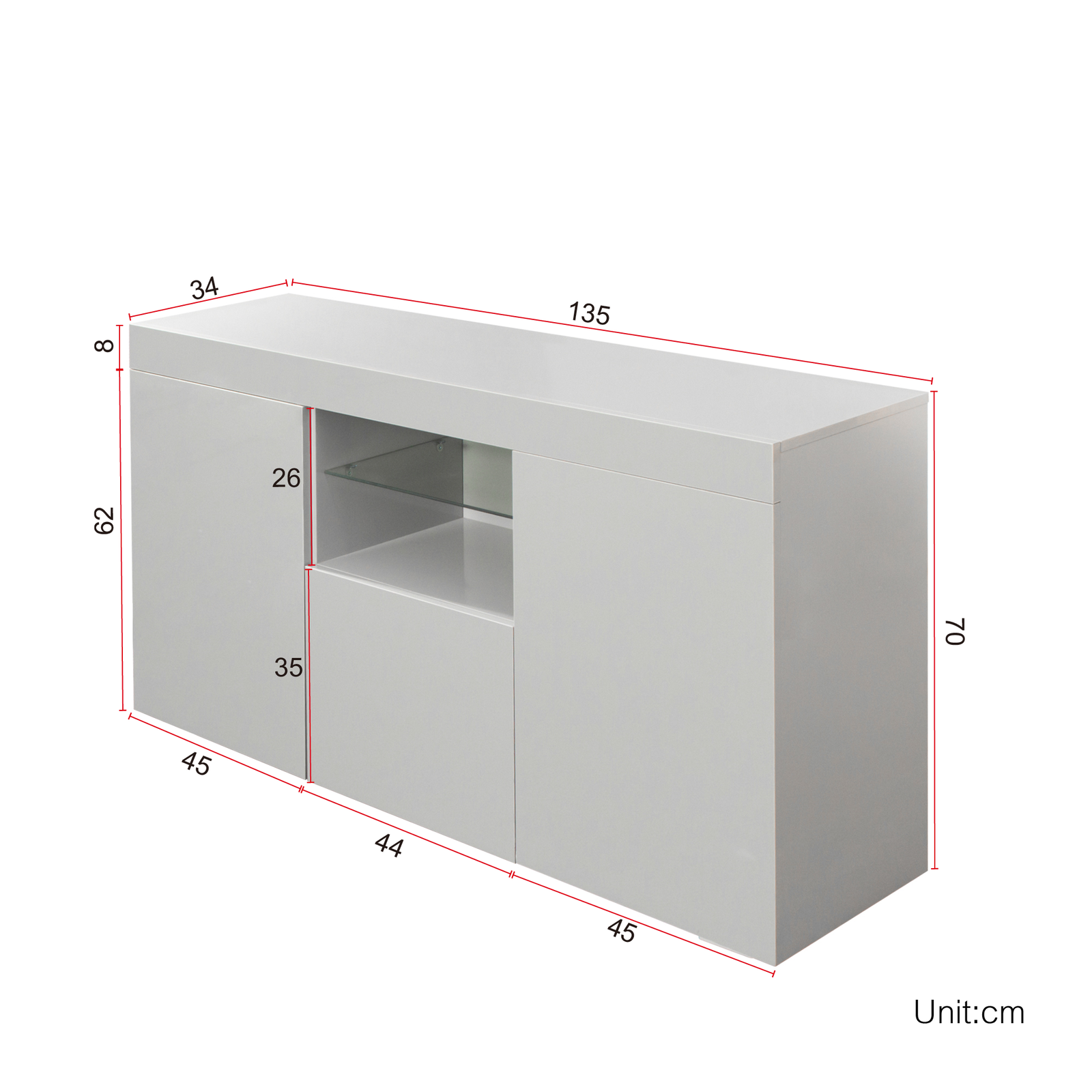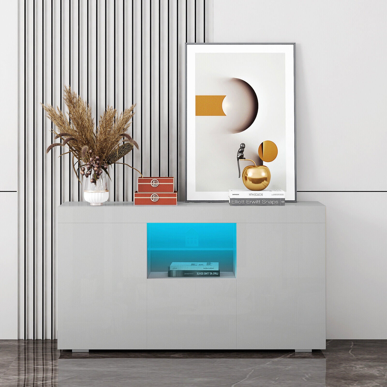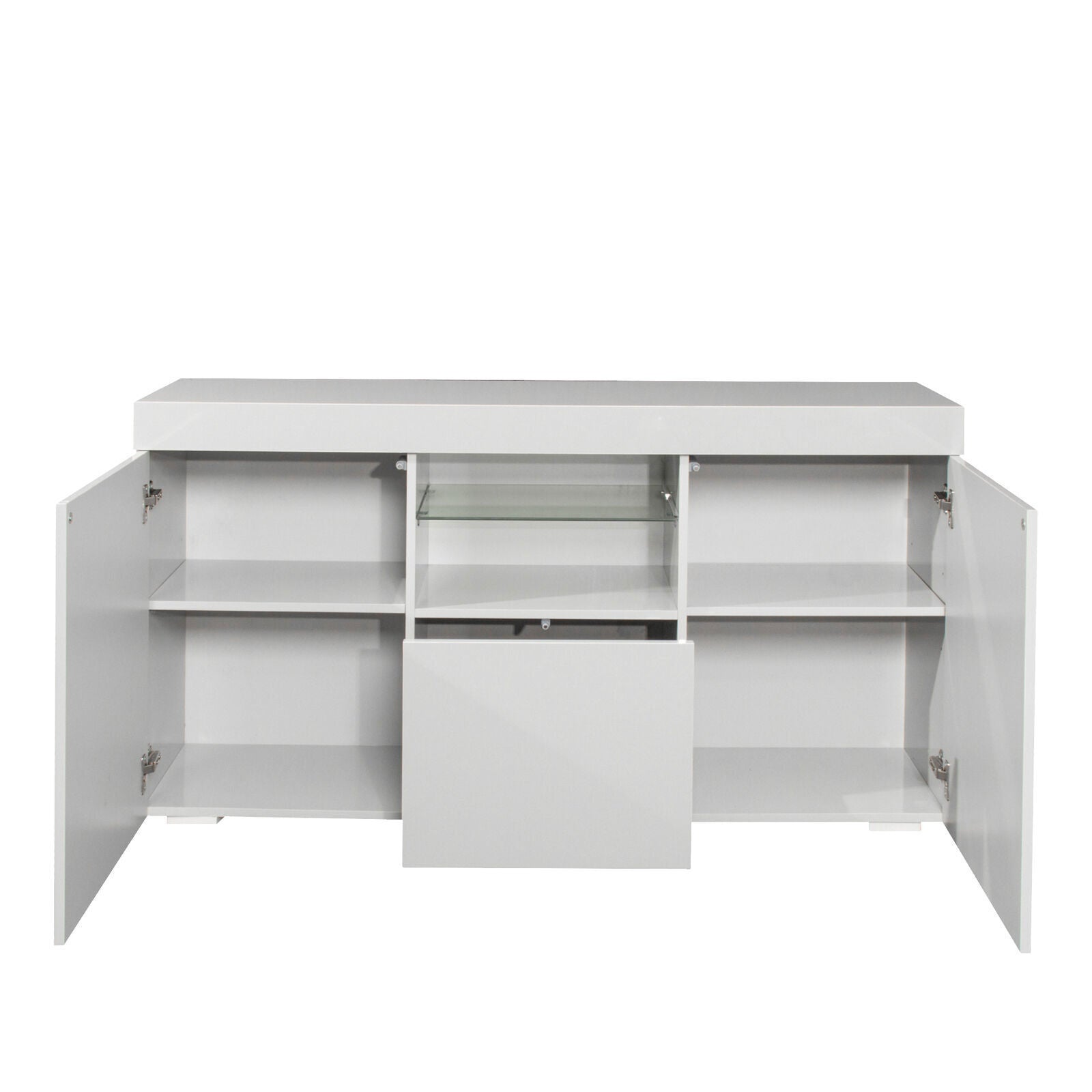 Modern LED Sideboard Kitchen Cabinet Cupboard Buffet Storage High Gloss GREY UK
