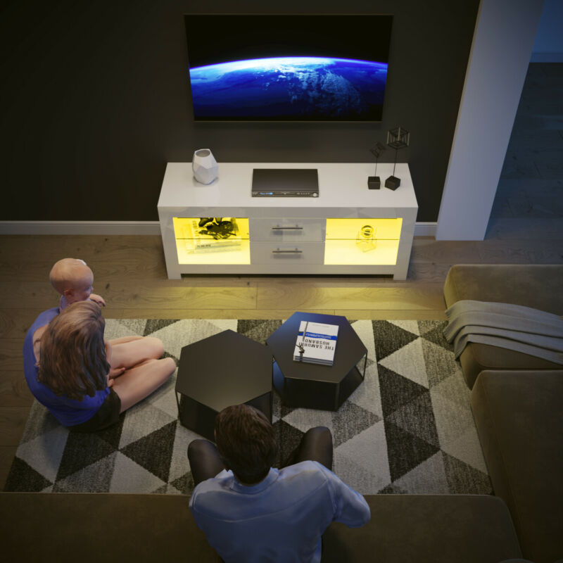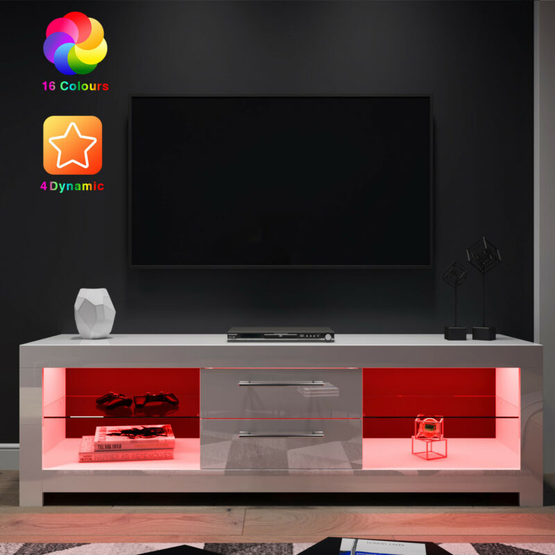 Modern LED TV Stand Unit Cabinet Living Room Set Entertainment High Gloss Doors