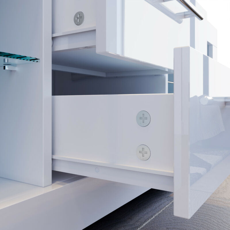 • Features: Flat Pack, High Gloss, With Drawers, With LED