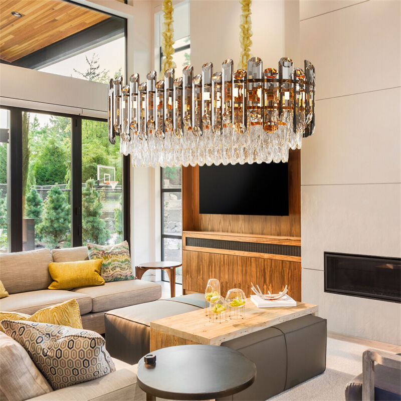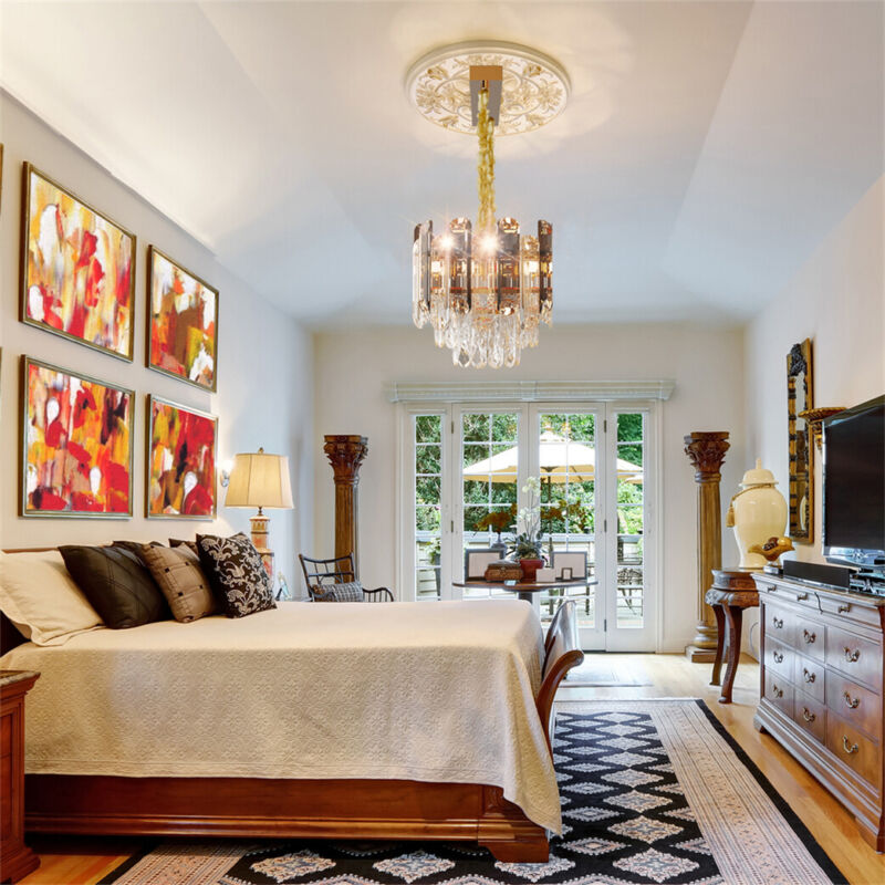 Modern Luxury Chandelier LED Crystal Droplet Elegant Ceiling Light Fixture Home