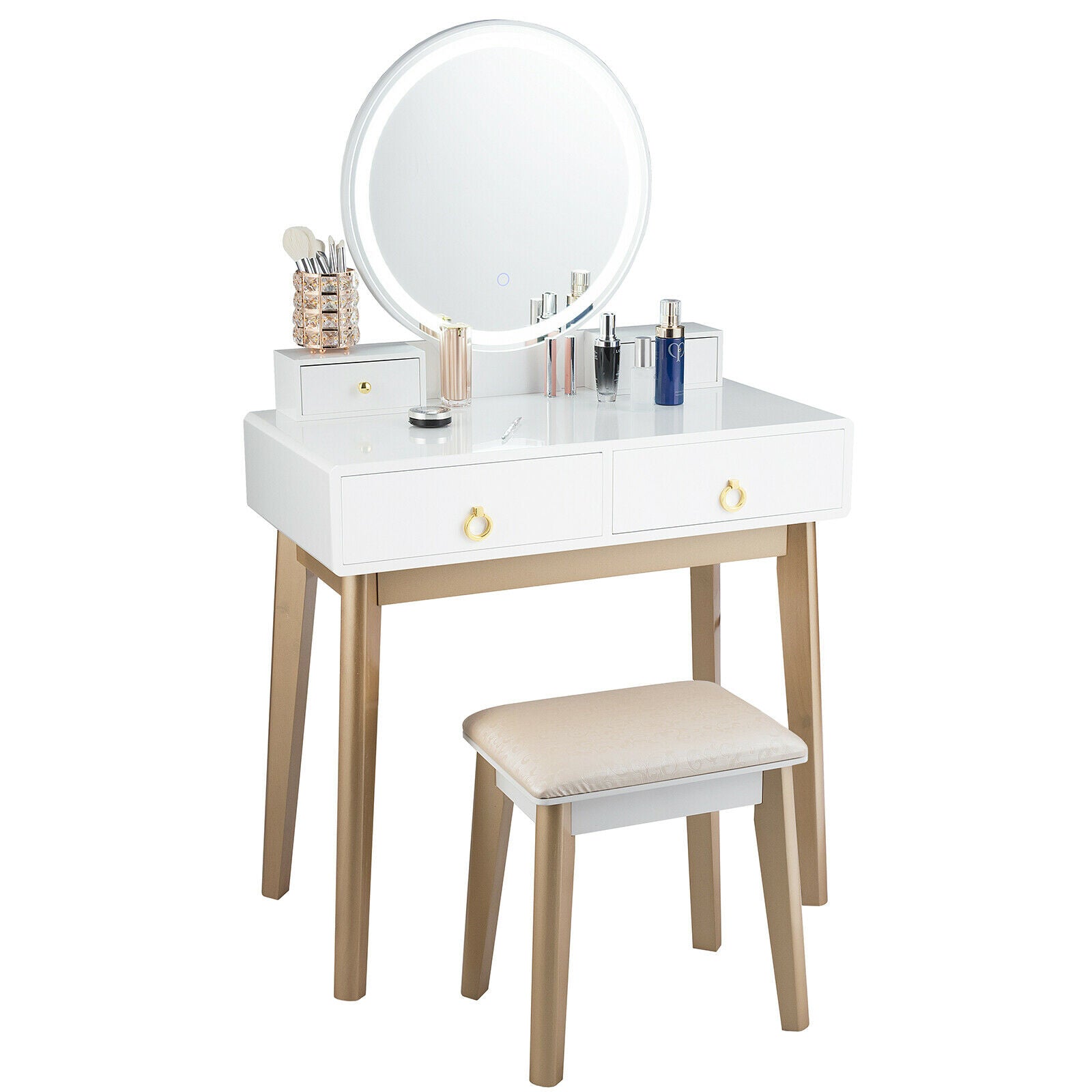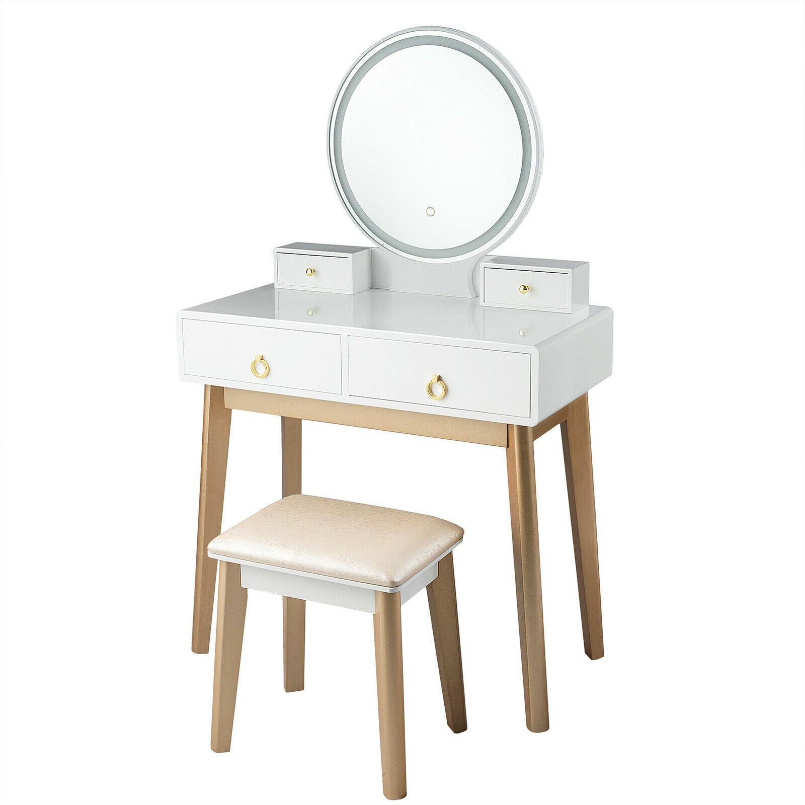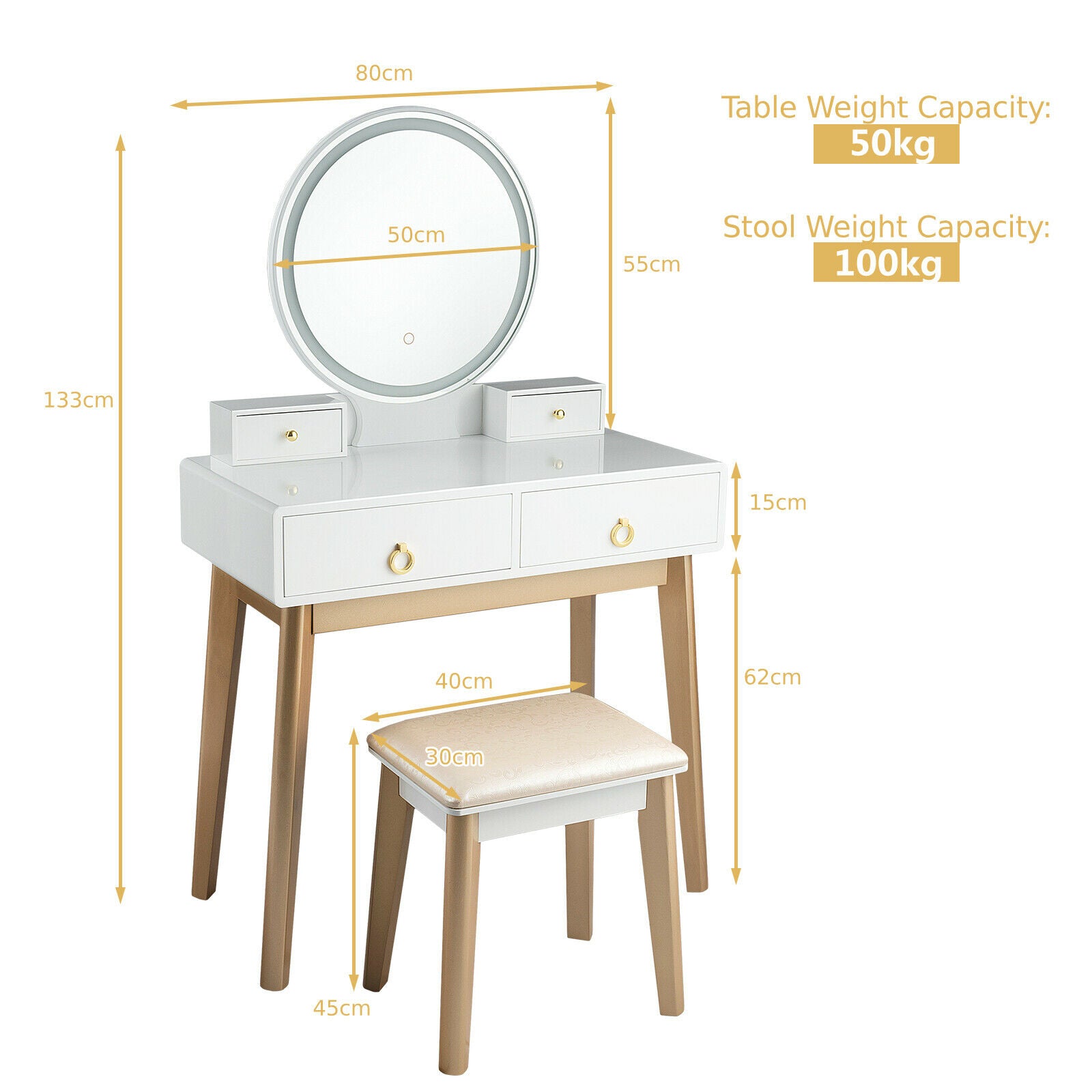 Modern Makeup Table Set Vanity Dressing Table W/ Stool LED Mirror & 4 Drawers