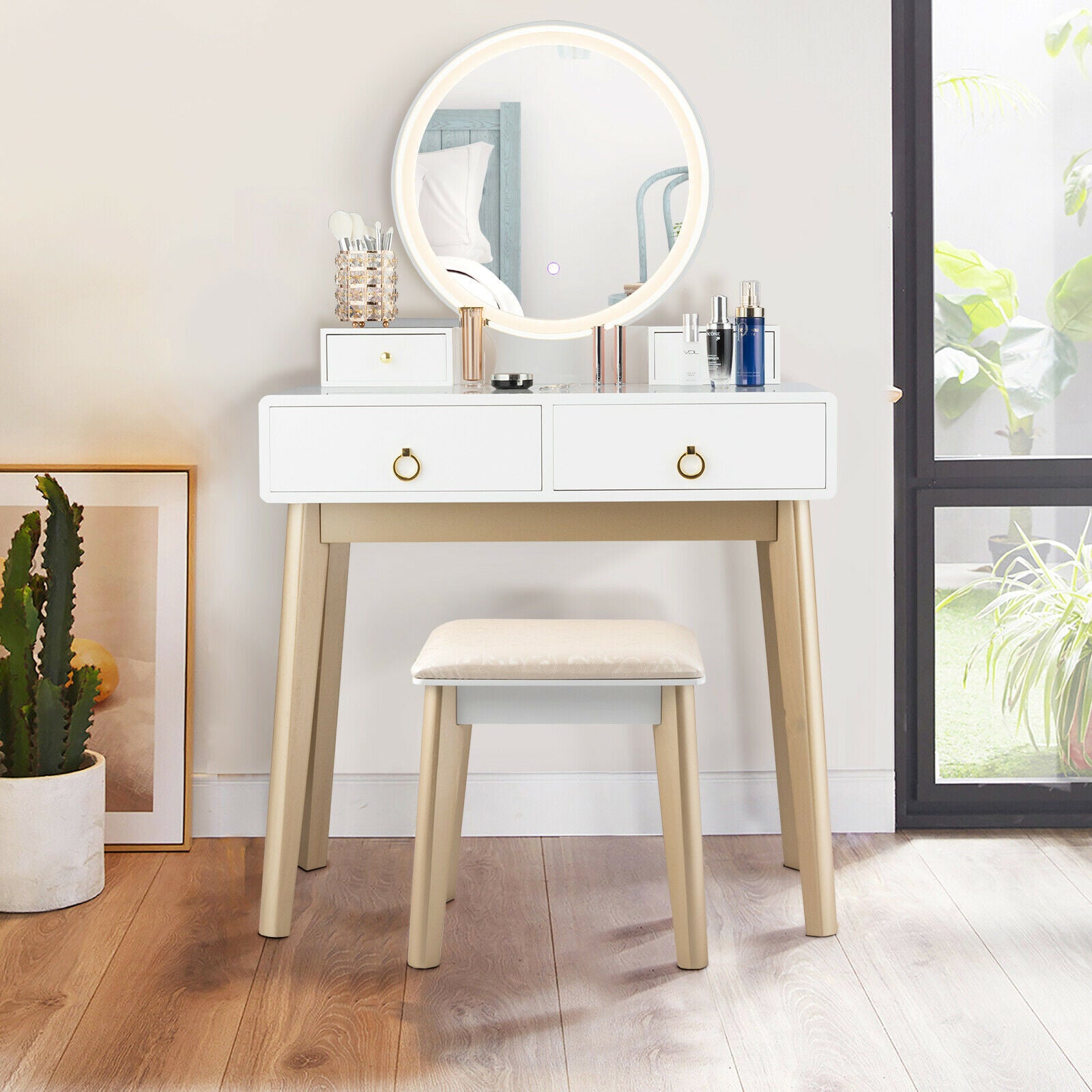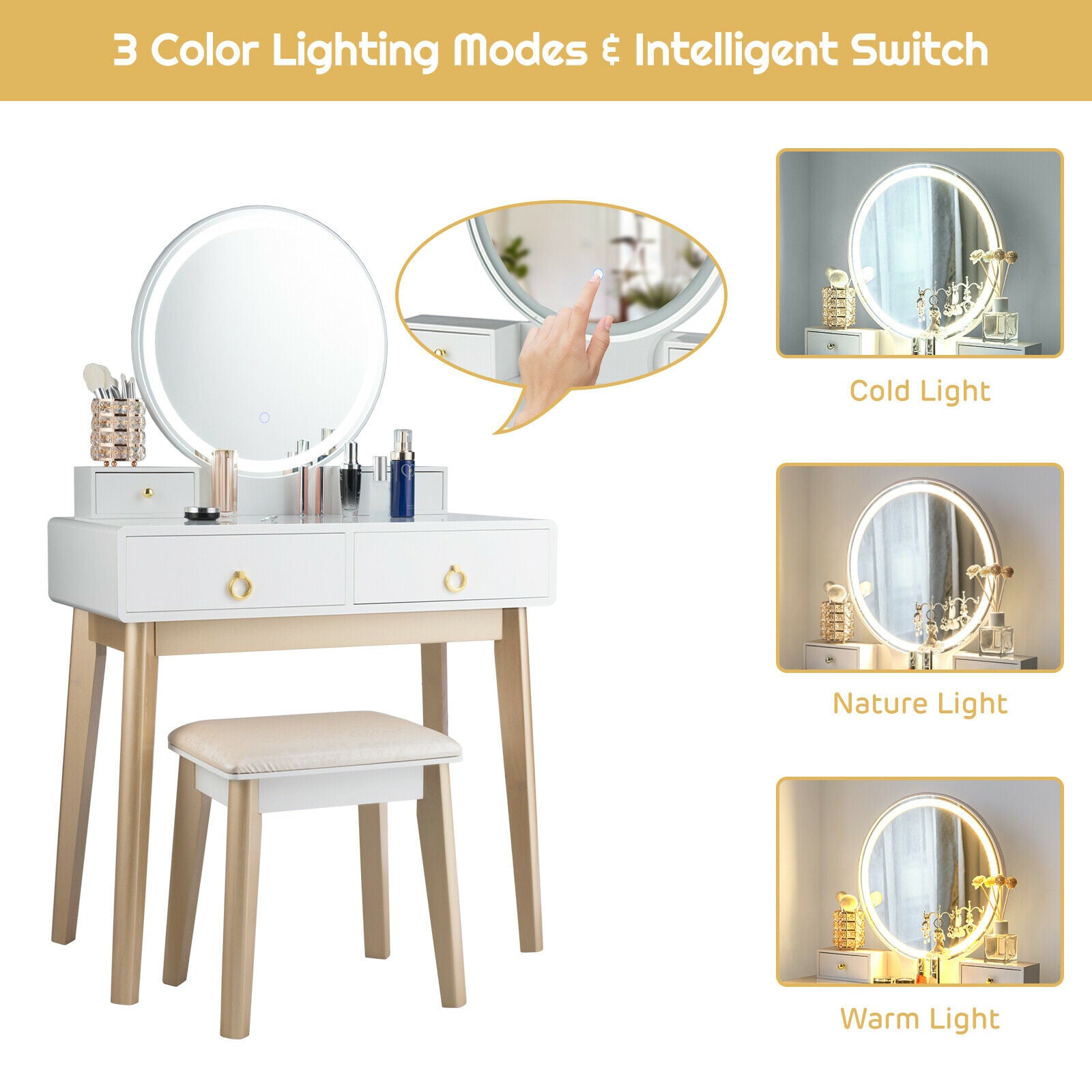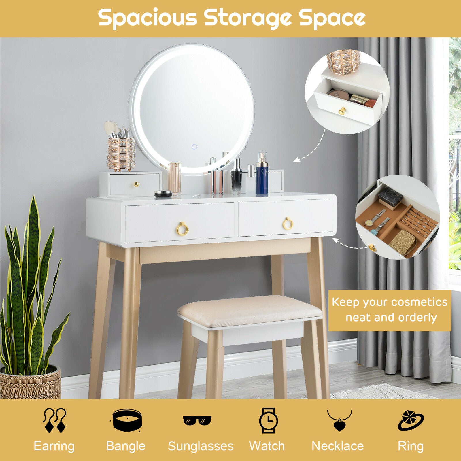 Modern Makeup Table Set Vanity Dressing Table W/ Stool LED Mirror & 4 Drawers