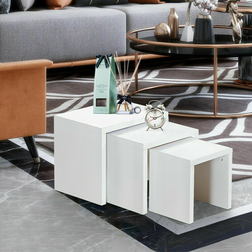 Modern Matte Nest of 3 Coffee Tables Modern Living Room Decor Sofa Side End Kits