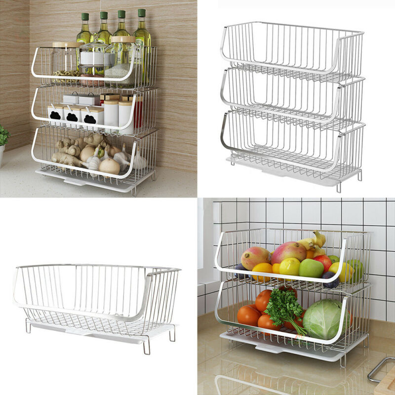 Modern Metal Stacking Wire Kitchen Vegetable Fruit Basket Storage Rack Organizer